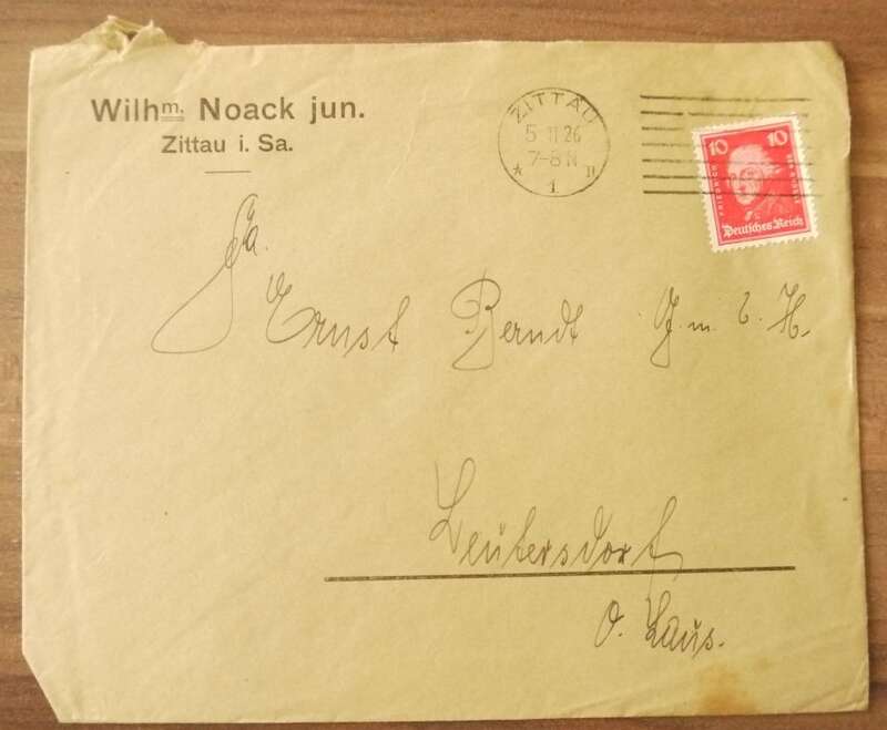 Firmenbrief Wilhm Noack jun Zittau Sachsen an Ernst Berndt GmbH DR 1926