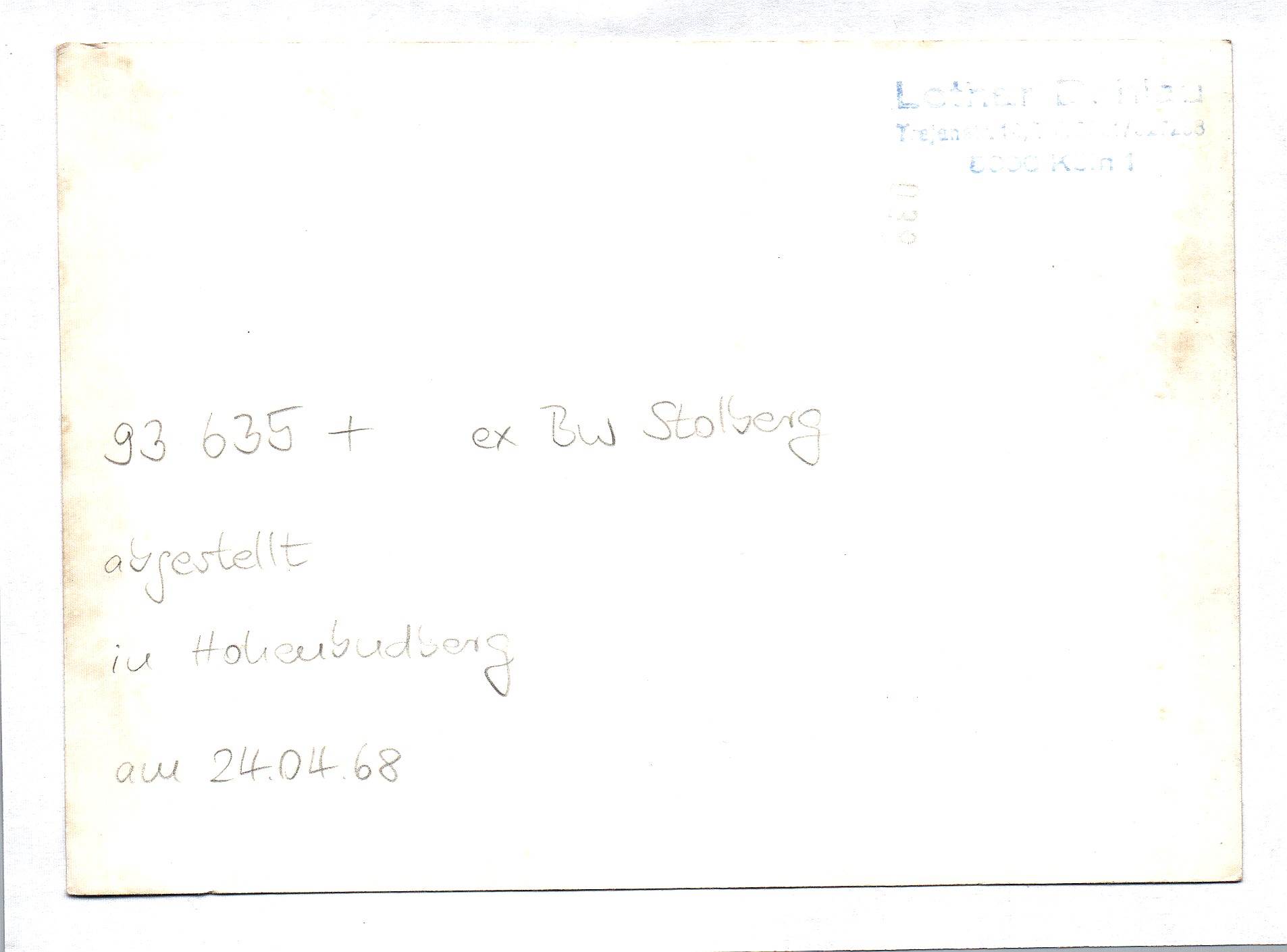 Foto 93 635 Dampflok ex Bw Stolberg abgestellt in Hohenbudberg 24.04.1968