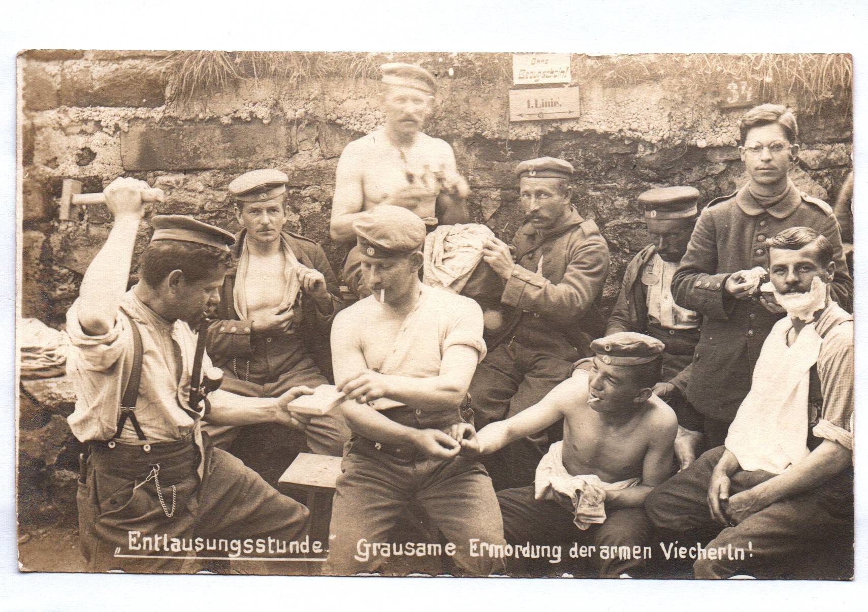 Foto Ak Entlausung 1 Wk Satire Humor Soldaten WW1