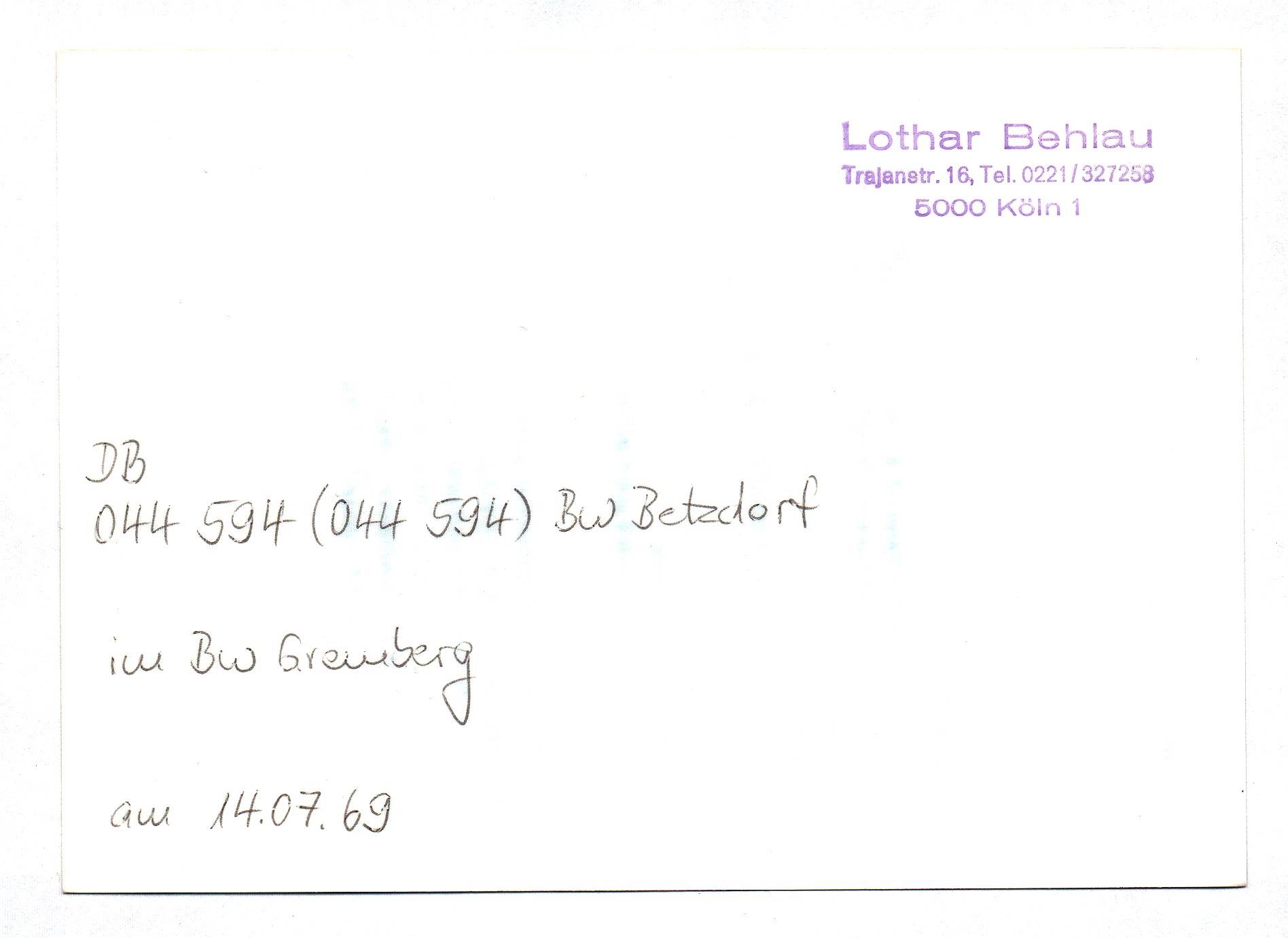 Foto Dampflok 044 594 Bw Betzdorf 14.07.1969 im Bw Gremberg