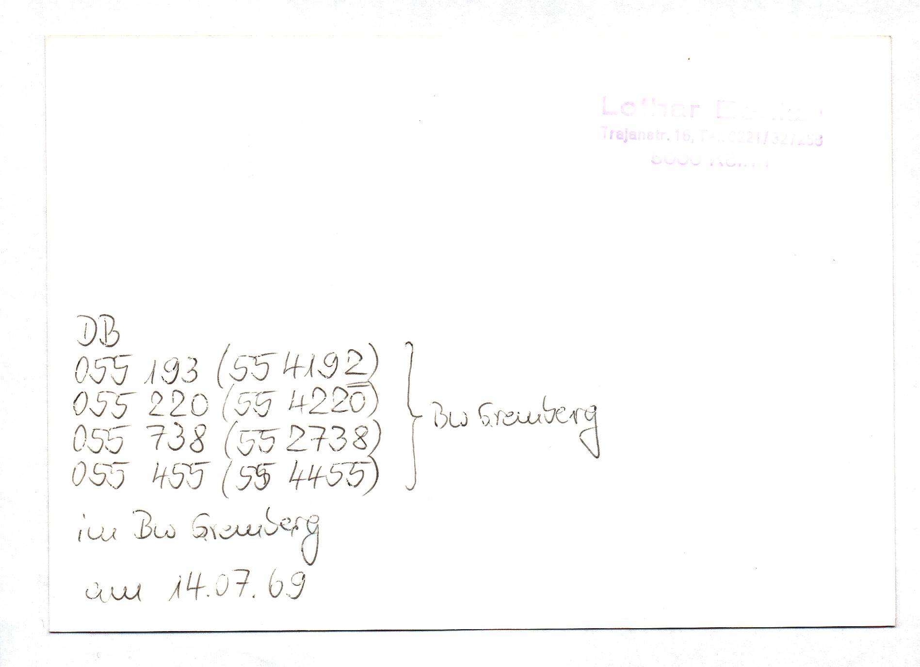 Foto Dampflok 055 220-8 und 055 738-9 Bw Gremberg 14.07.1969