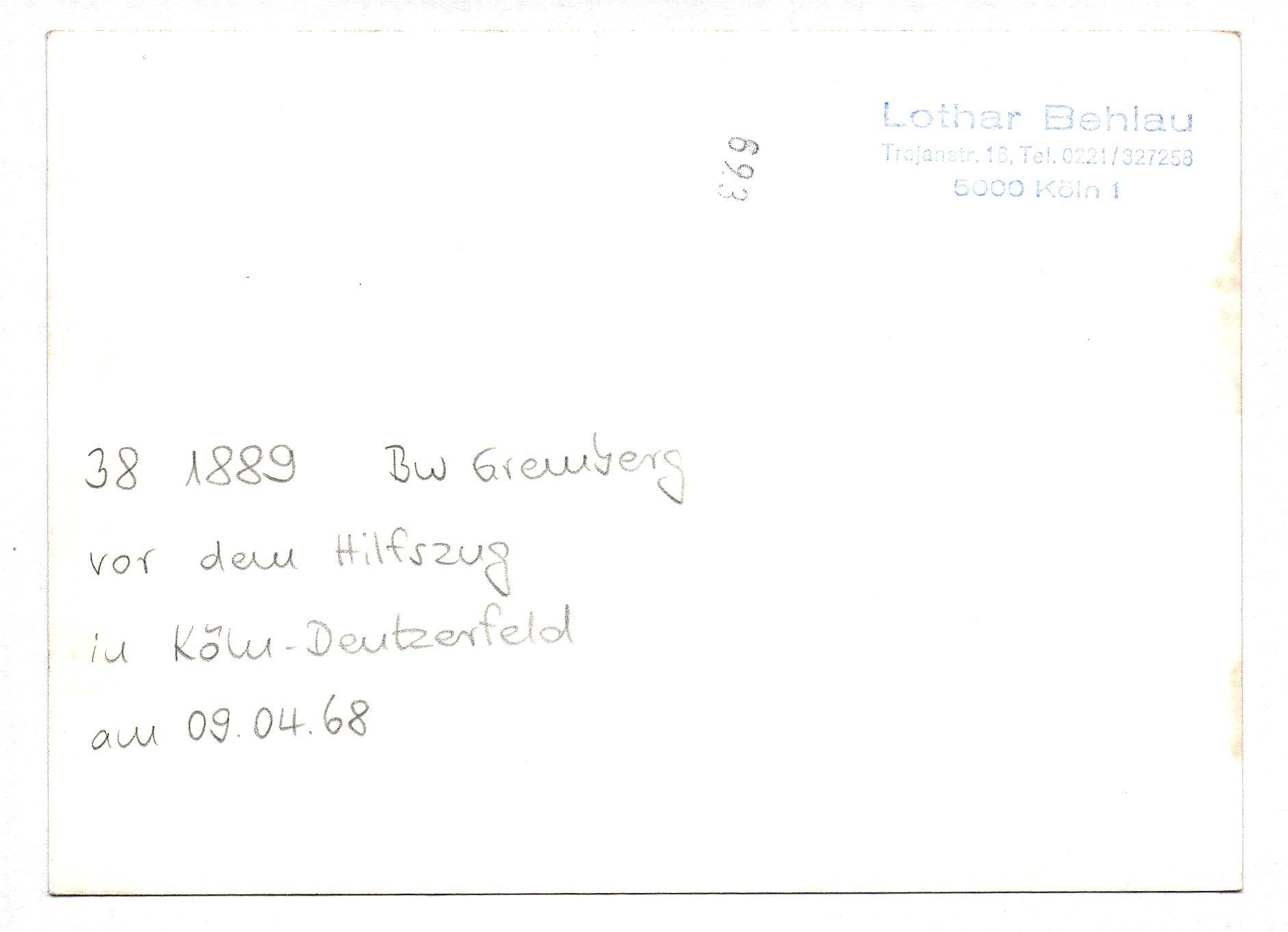 Foto Dampflok 38 1889 Bw Gremberg vor dem Hilfszug Köln-Deutzerfeld 09.04.1968