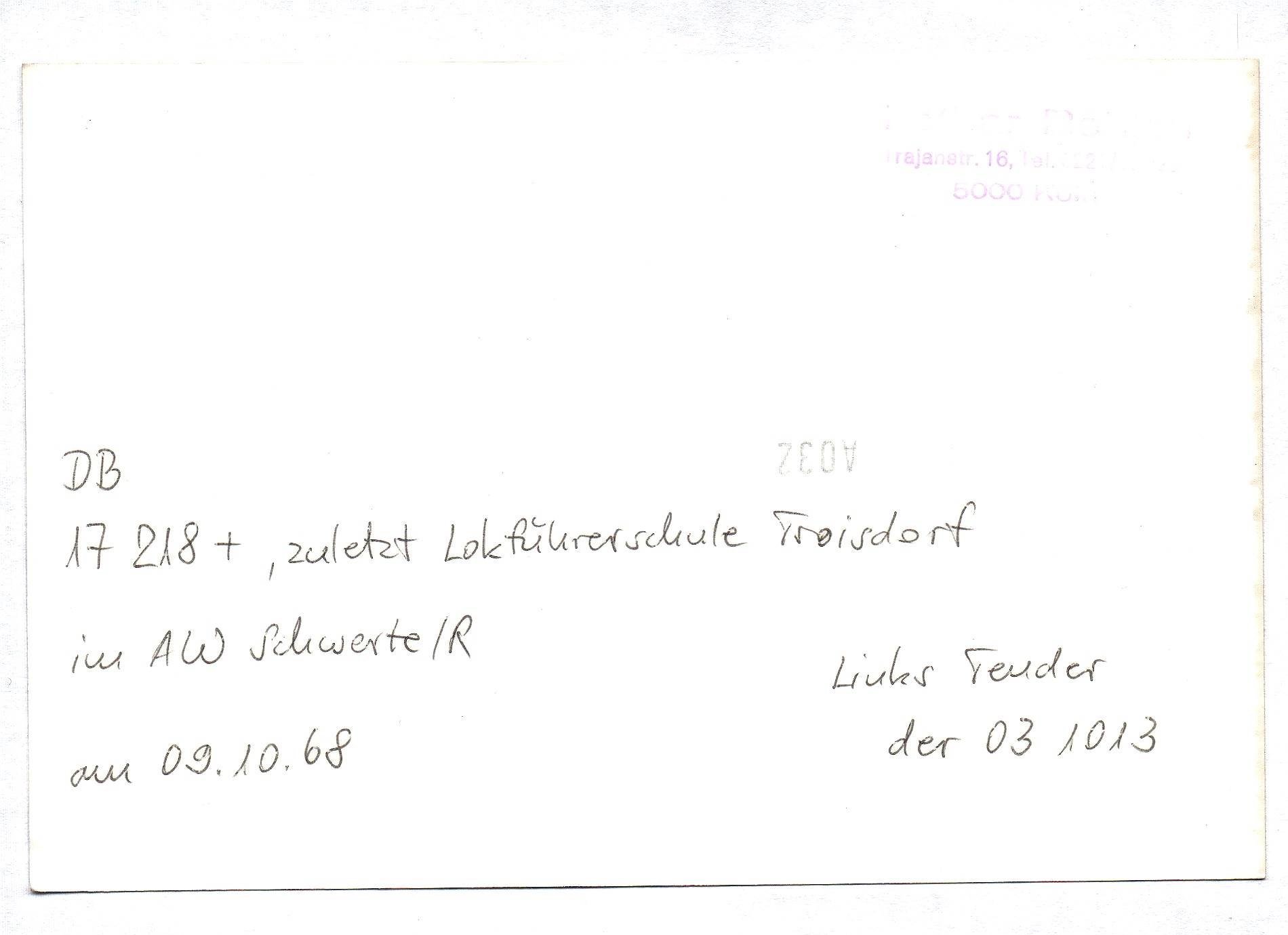 Foto Dampflok DB 17 218 Aw Schwerte (Ruhr) 09.10.1968