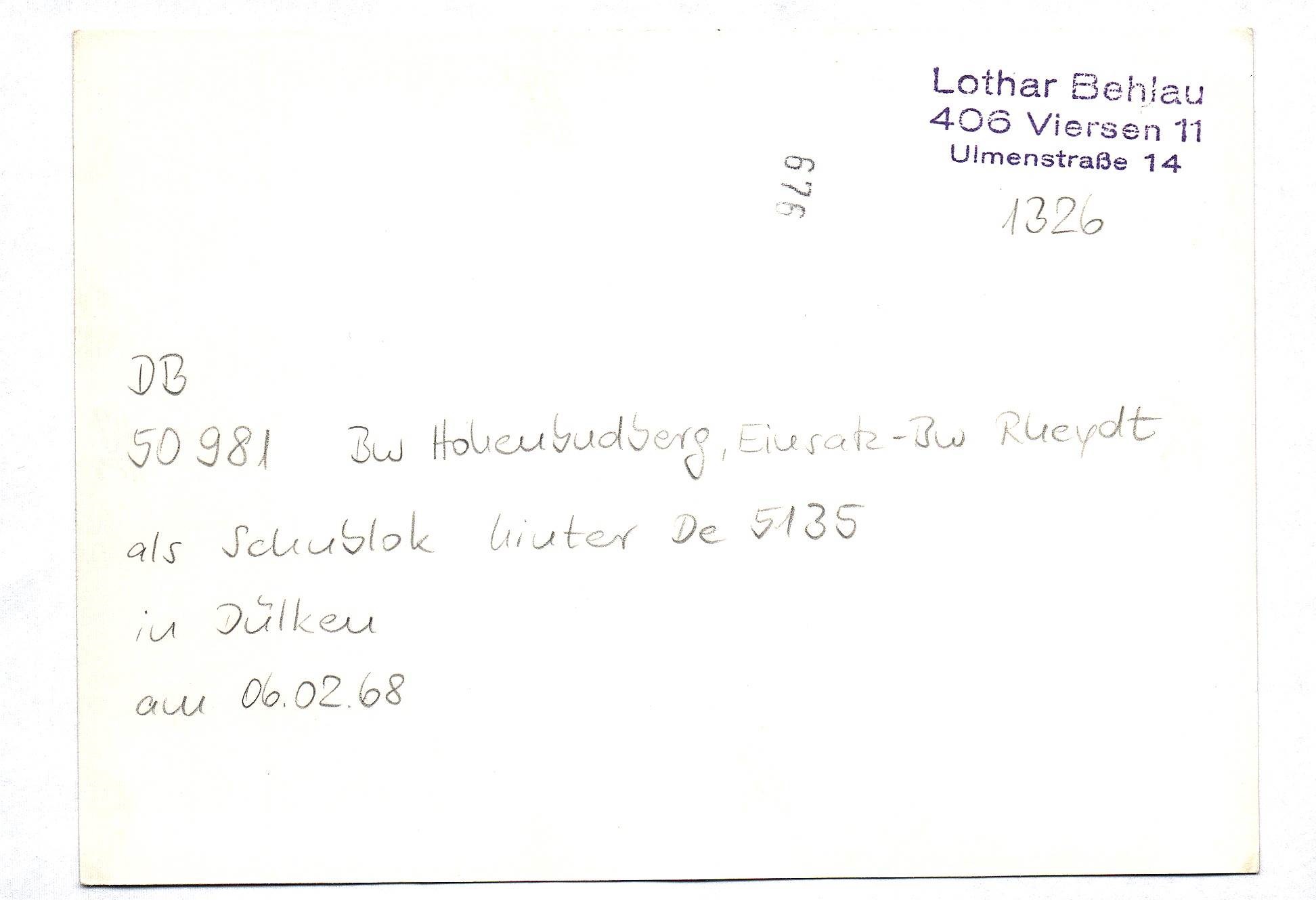 Foto Dampflok DB 50 981 Hohenbudberg Rheydt Schublok De5135 in Dülken
