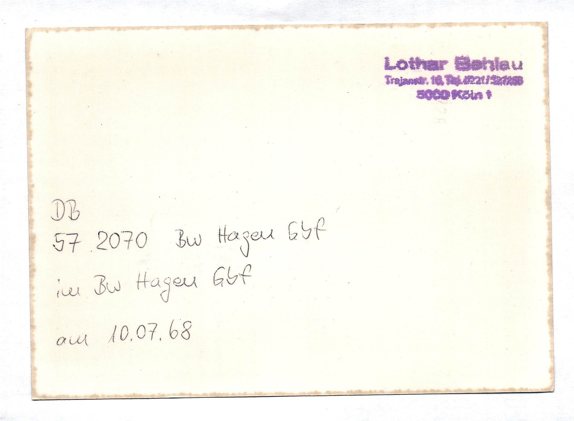 Foto Dampflok DB 57 2070 Bw Hagen Gbf 10.07.1968 10.07.1968