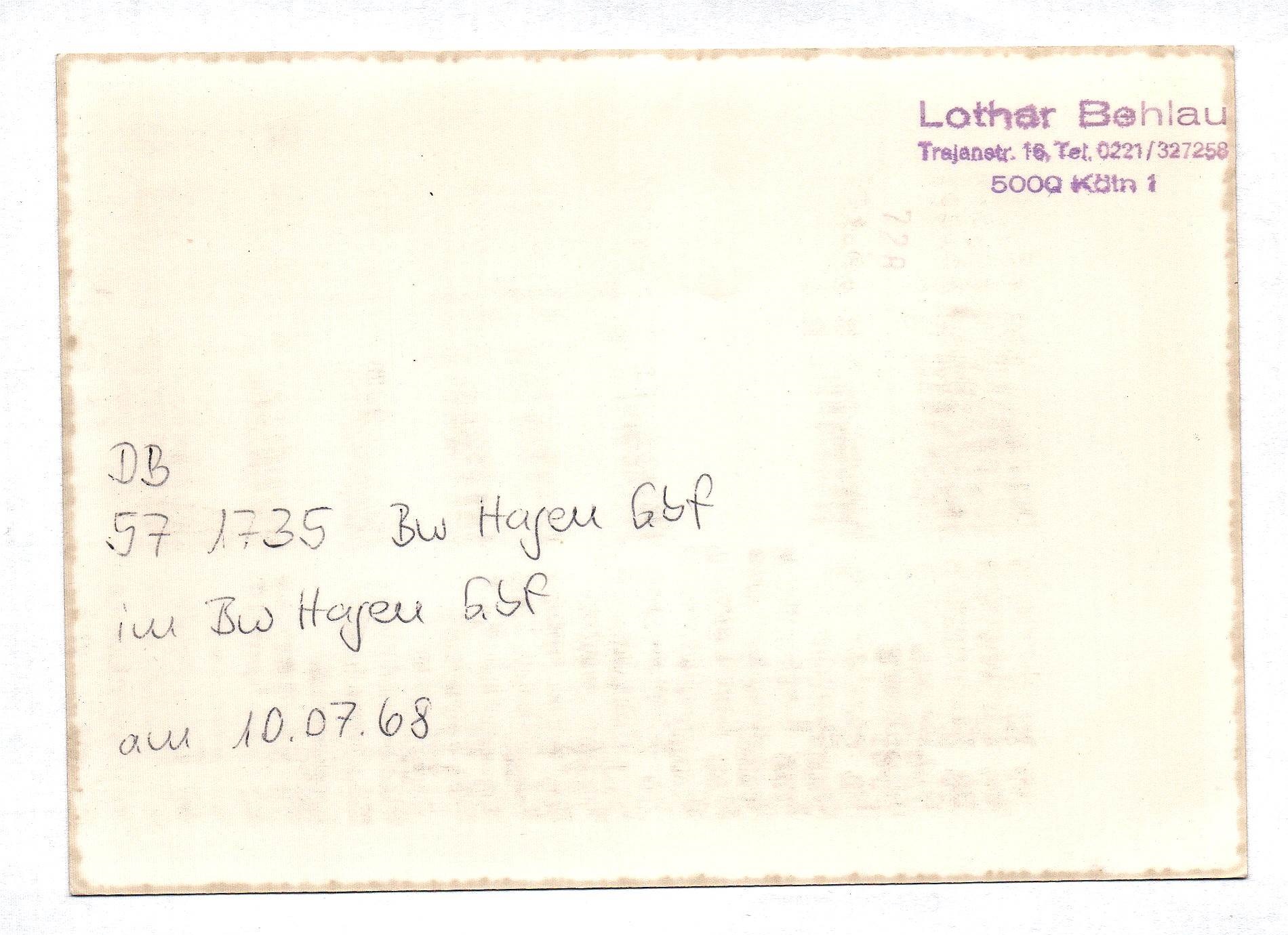 Foto DB Dampflok 57 1735 Bw Hagen Gbf im Bw Hagen Gbf 10.07.1968