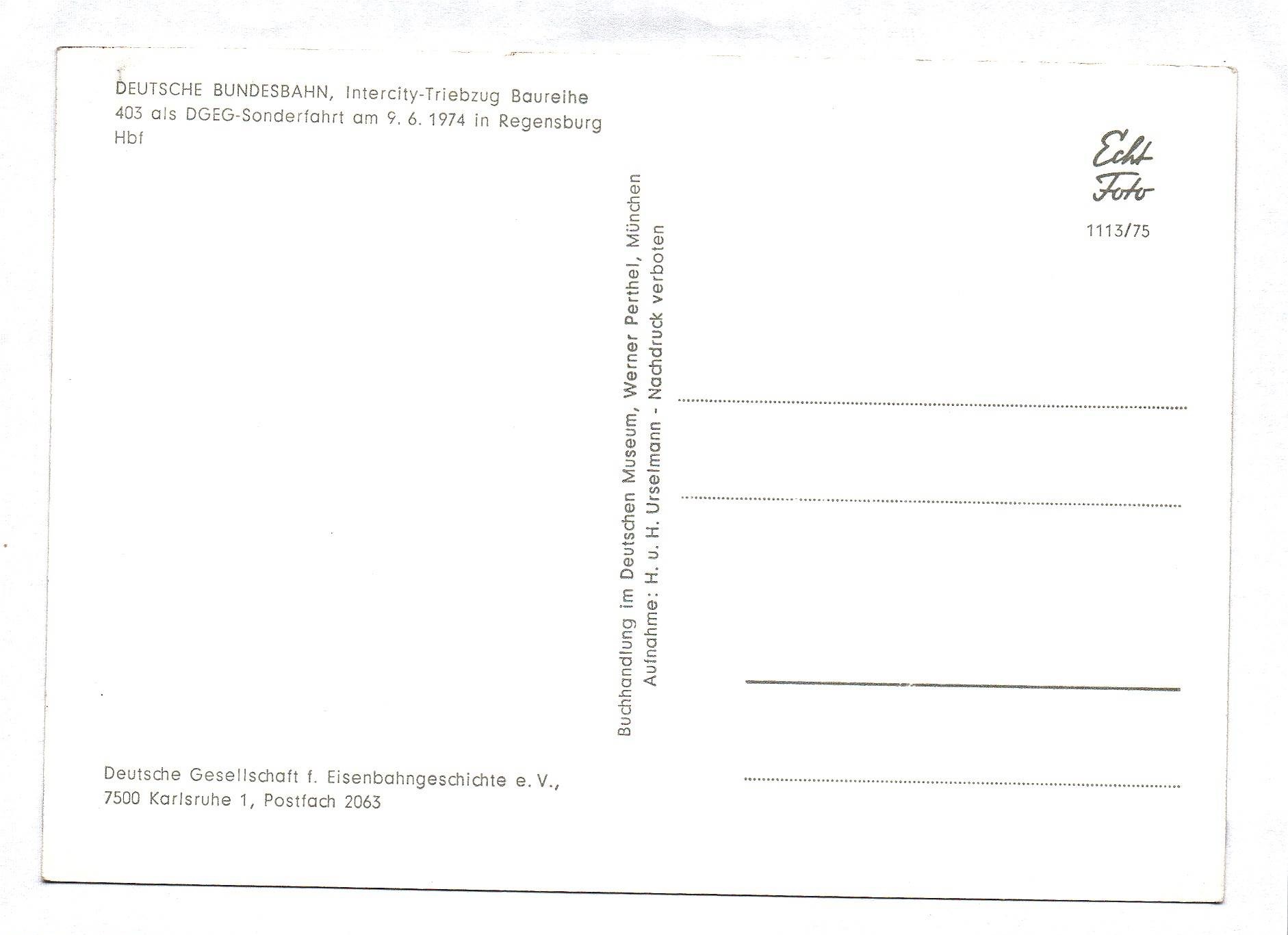 Foto DB Tinercity-Triebzug Baureihe 403 Regensburg 09.06.1974