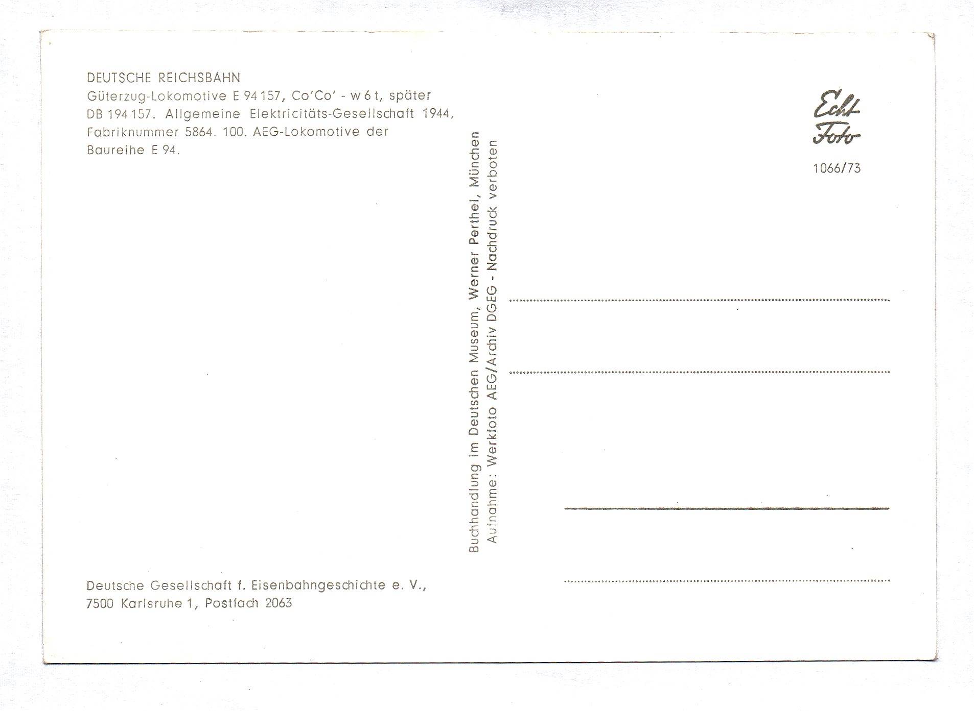 Foto E-Lok 100 AEG E94 157 Elektrolokomotive 1960er 1970er