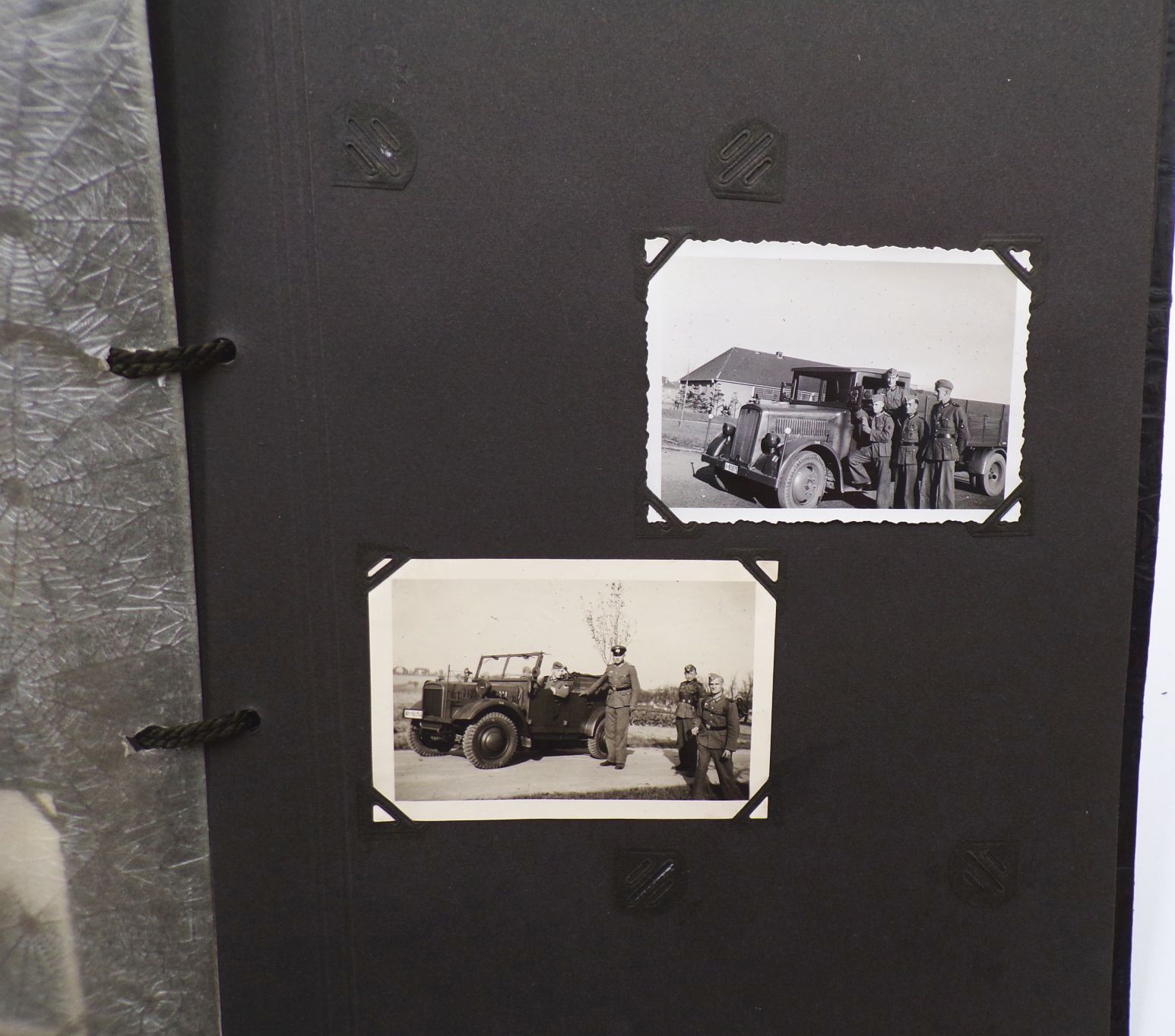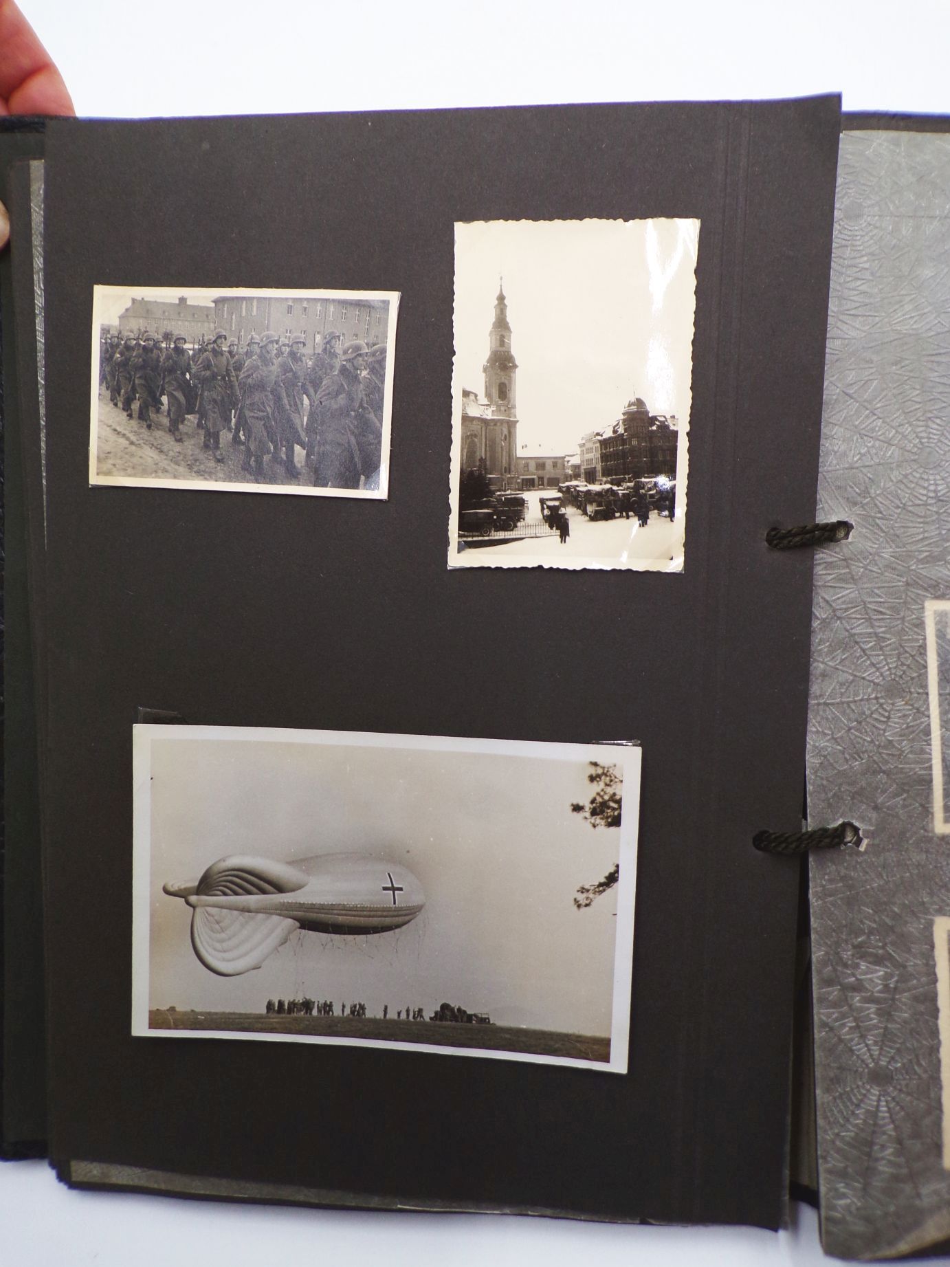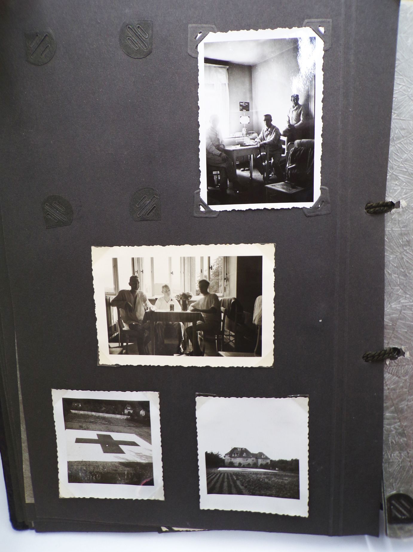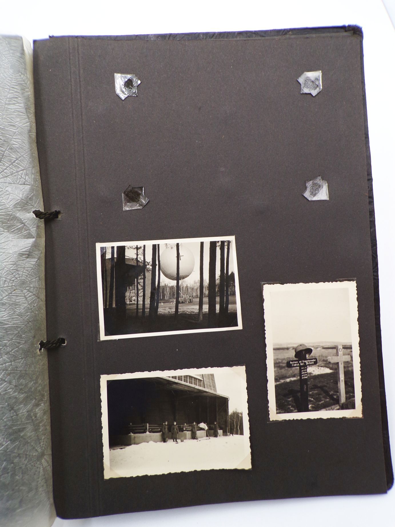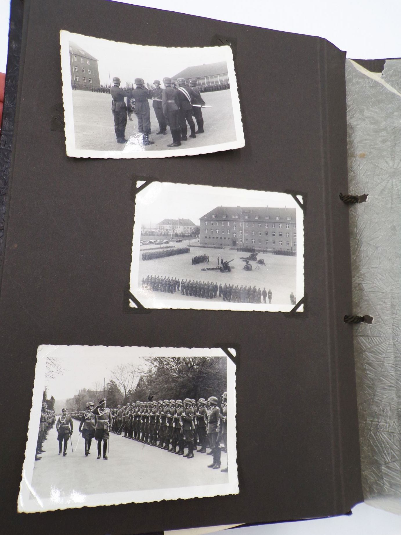 Originales Fotoalbum aus dem 2. Weltkrieg. Beobachtungs Abteilung 4 Meißen. Mit insgesamt 83 Fotos. Welche oftmals lose sind. Das Album weist viele Leerstellen auf, d.h. es waren einmal mehr Fotos enthalten. Album Maße: 23 cm x 31 cm. Erhaltung: Gebrauchsspuren vorhanden, Buchdeckel entnazifiziert ( Kreuz rausgeschabt ), Bindung leicht gelockert, ansonsten gut, alles weitere siehe bitte Fotos.