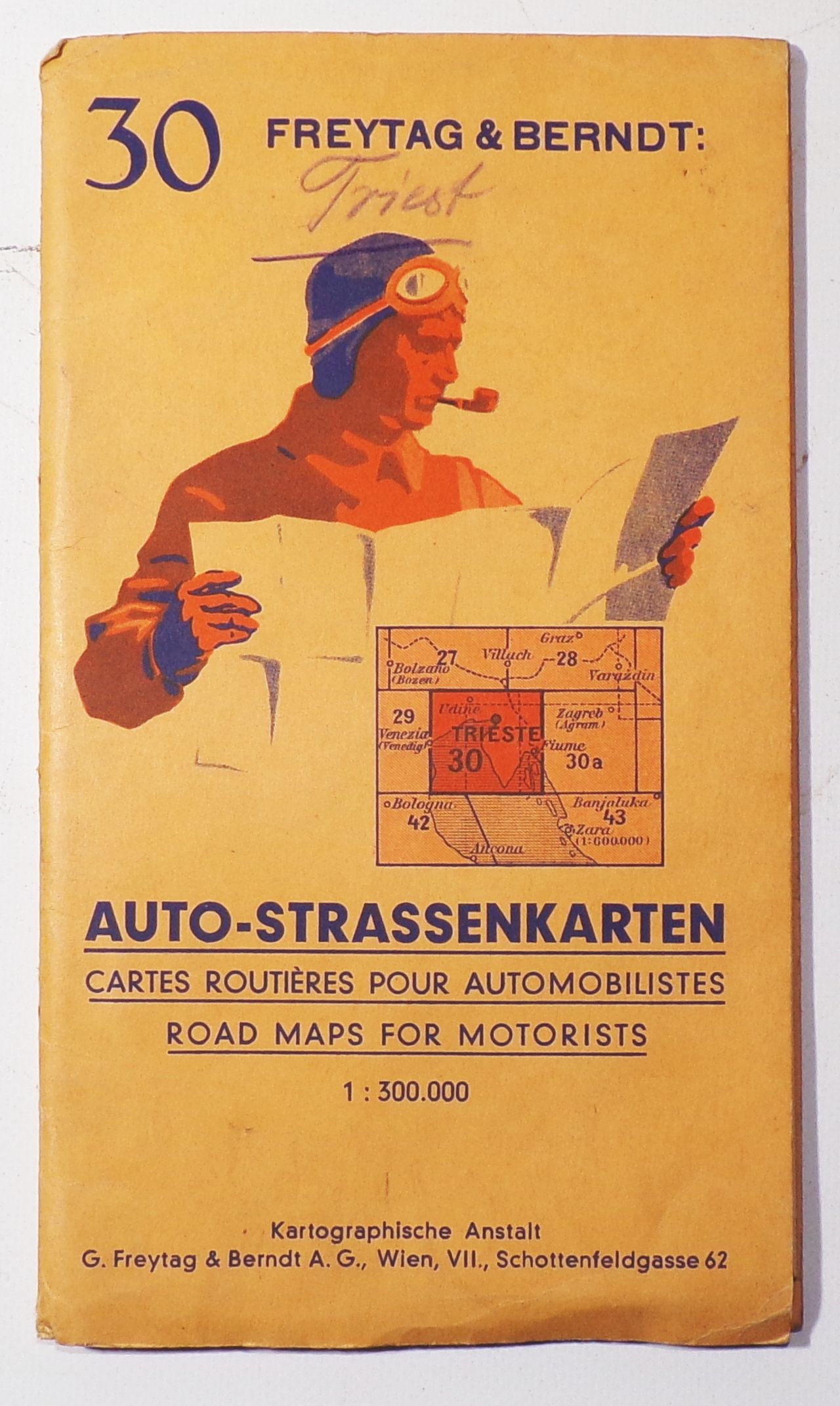 Freytag Berndt Auto Strassenkarte Trieste Italien 1930er vintage Landkarte