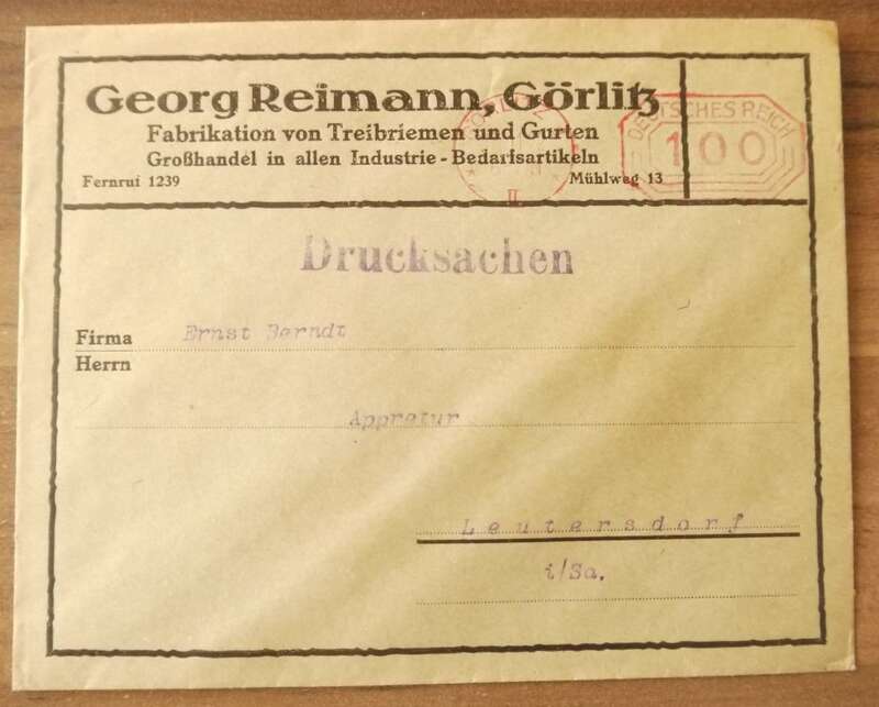 Georg Reimann Görlitz Fabrikation von Treibriemen und Gruten Drucksachen DR 1922