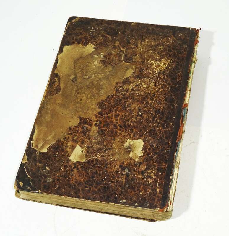 Erhaltung: Buchrücken fehlt, innen stellenweise arg unsauber, bestossen und gestaucht, etwas abgenutzt, alles weitere siehe bitte Fotos.