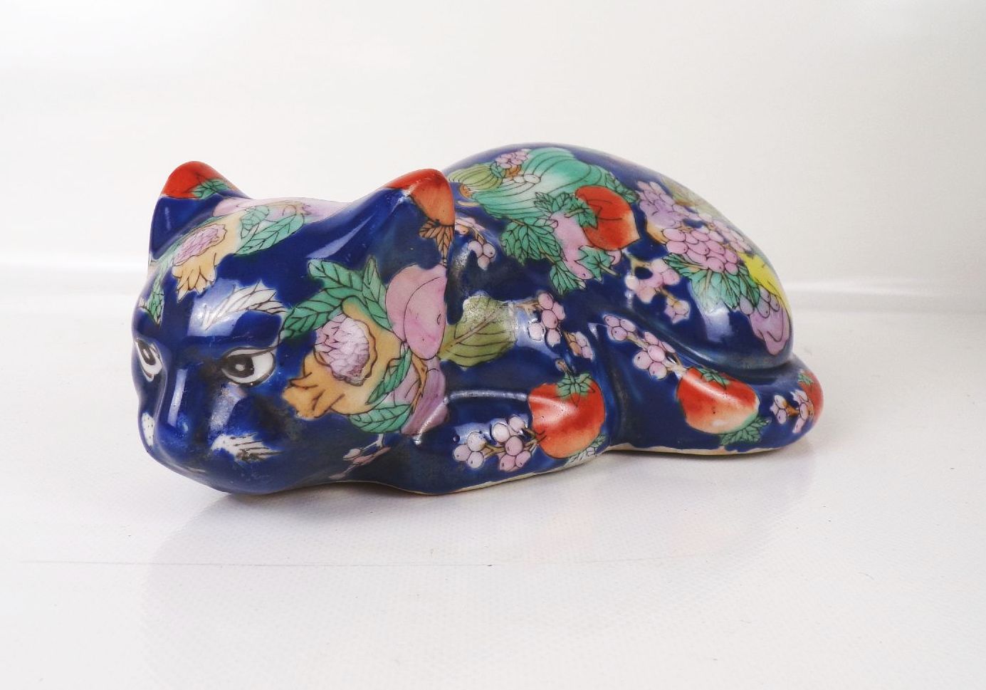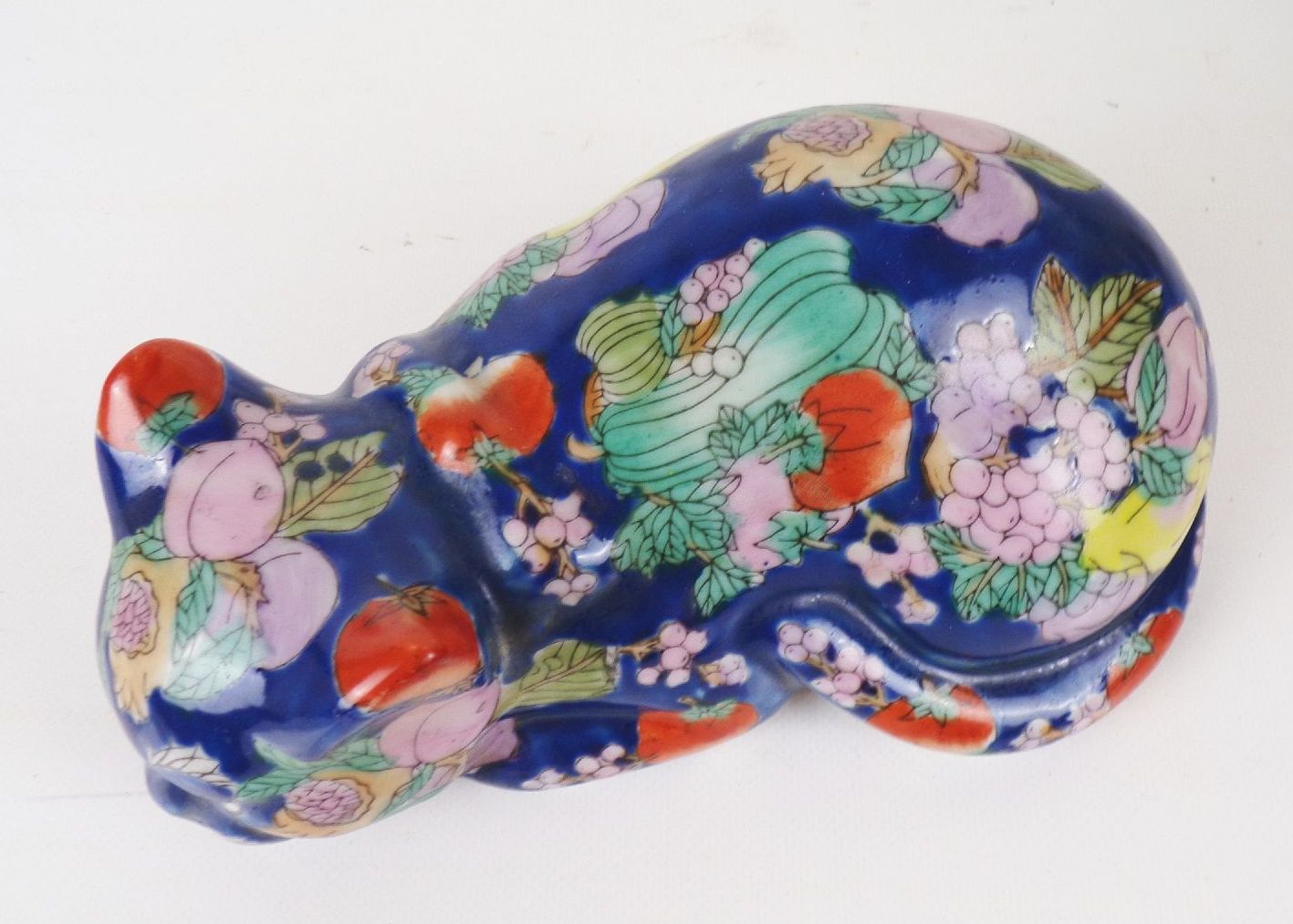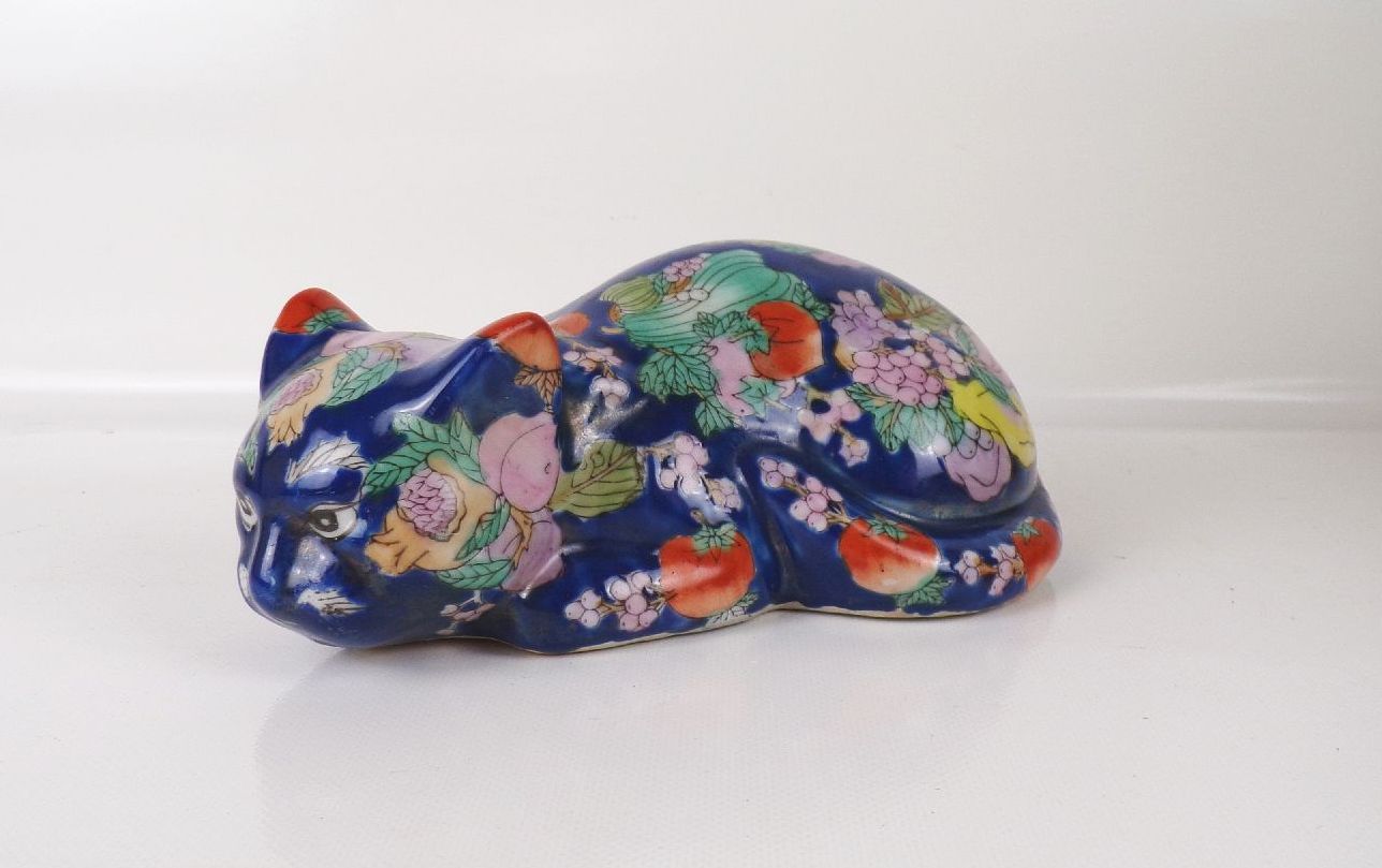 Originale, älter Porzellanfigur in Form einer Katze, der Marke HK 5 Dynasty. Maße: 21 x 11 x 8 cm. Erhaltung: guter, gebrauchter Zustand, alles weitere siehe bitte Fotos. Es wird keine Mehrwertsteuer ausgewiesen, da wir der Differenzbesteuerung nach § 25a UStG unterliegen.