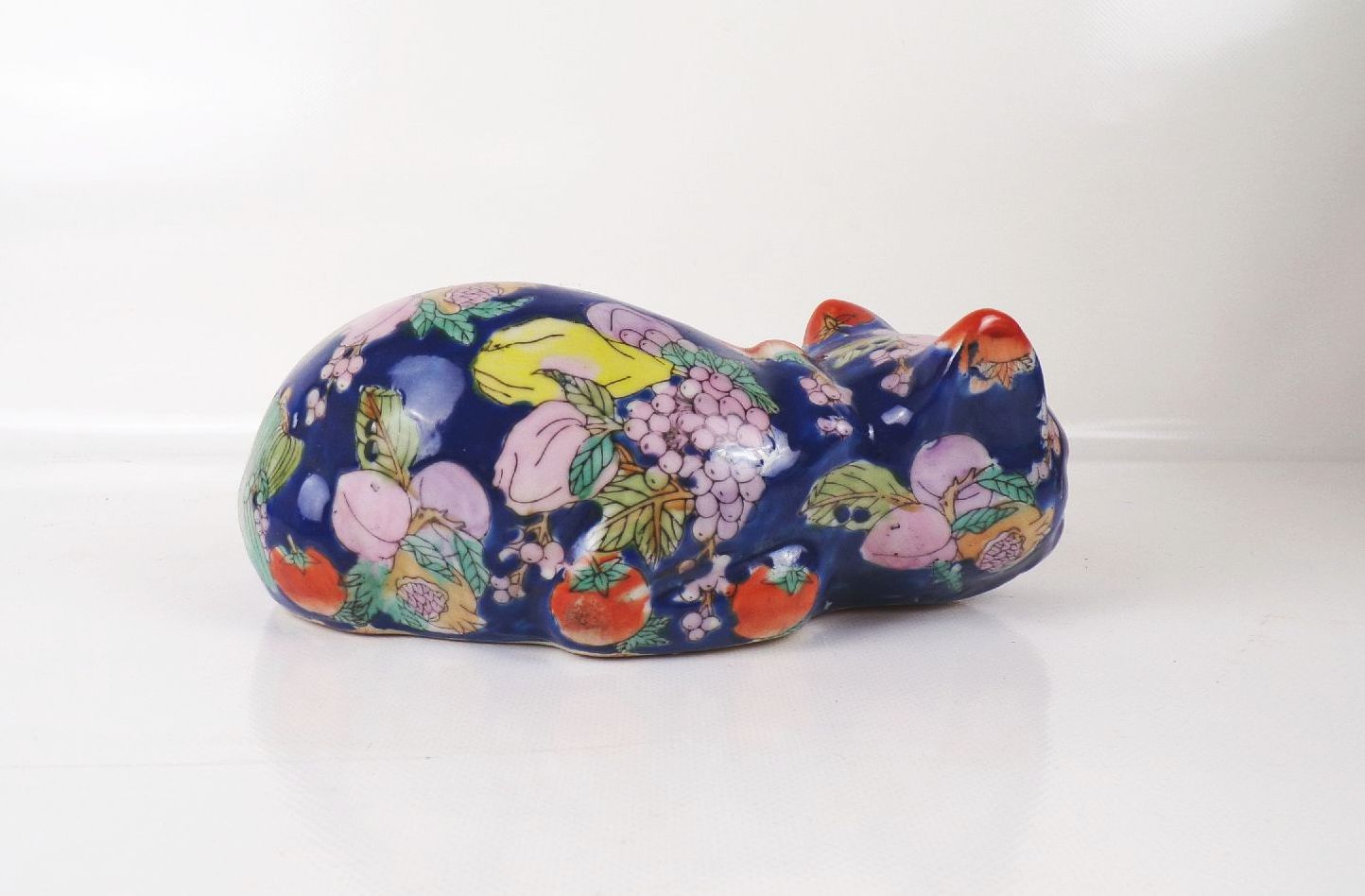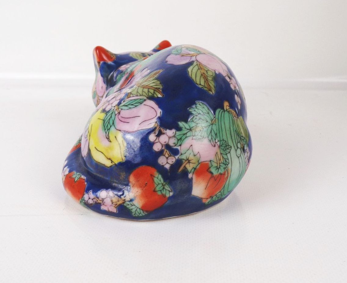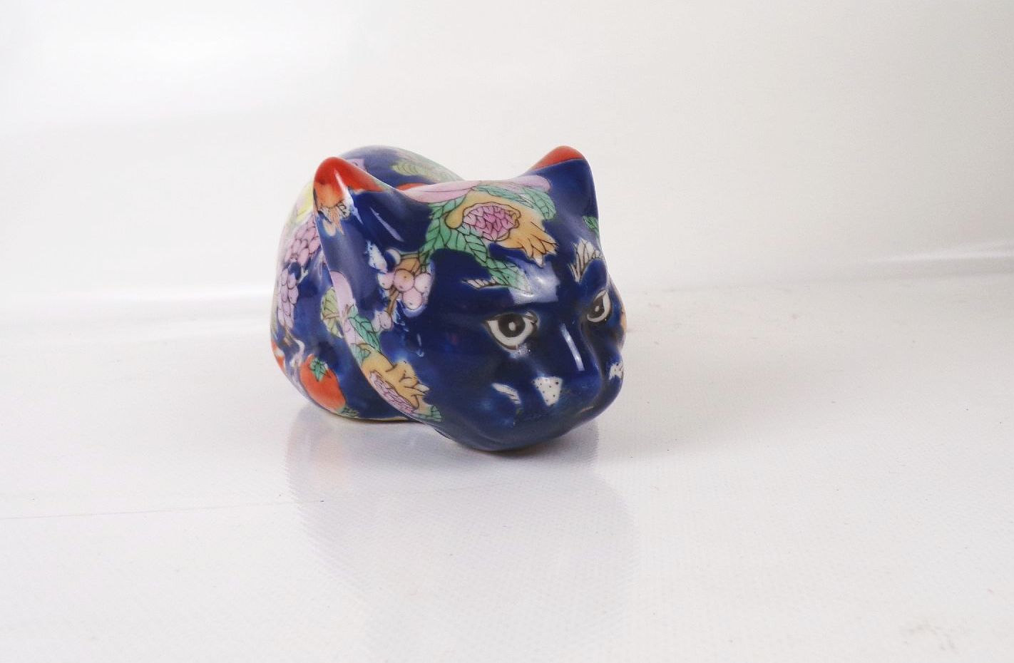 Originale, älter Porzellanfigur in Form einer Katze, der Marke HK 5 Dynasty. Maße: 21 x 11 x 8 cm. Erhaltung: guter, gebrauchter Zustand, alles weitere siehe bitte Fotos. Es wird keine Mehrwertsteuer ausgewiesen, da wir der Differenzbesteuerung nach § 25a UStG unterliegen.