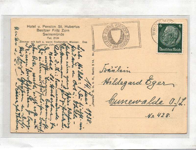 Hotel und Restaurant Pension Hubertus 1938 Swinemünde