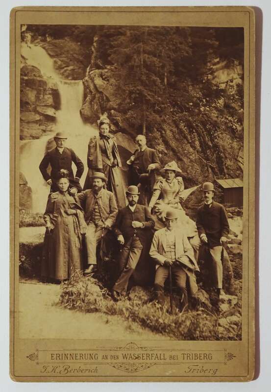 Kabinettfoto Reisegesellschaft Triberg Schwarzwald 1890er Wasserfall