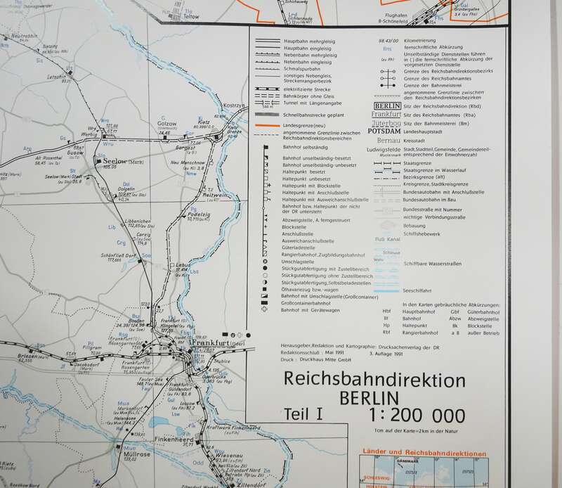 Karte Reichsbahndirektion Berlin Teil I 1991 Schienennetz