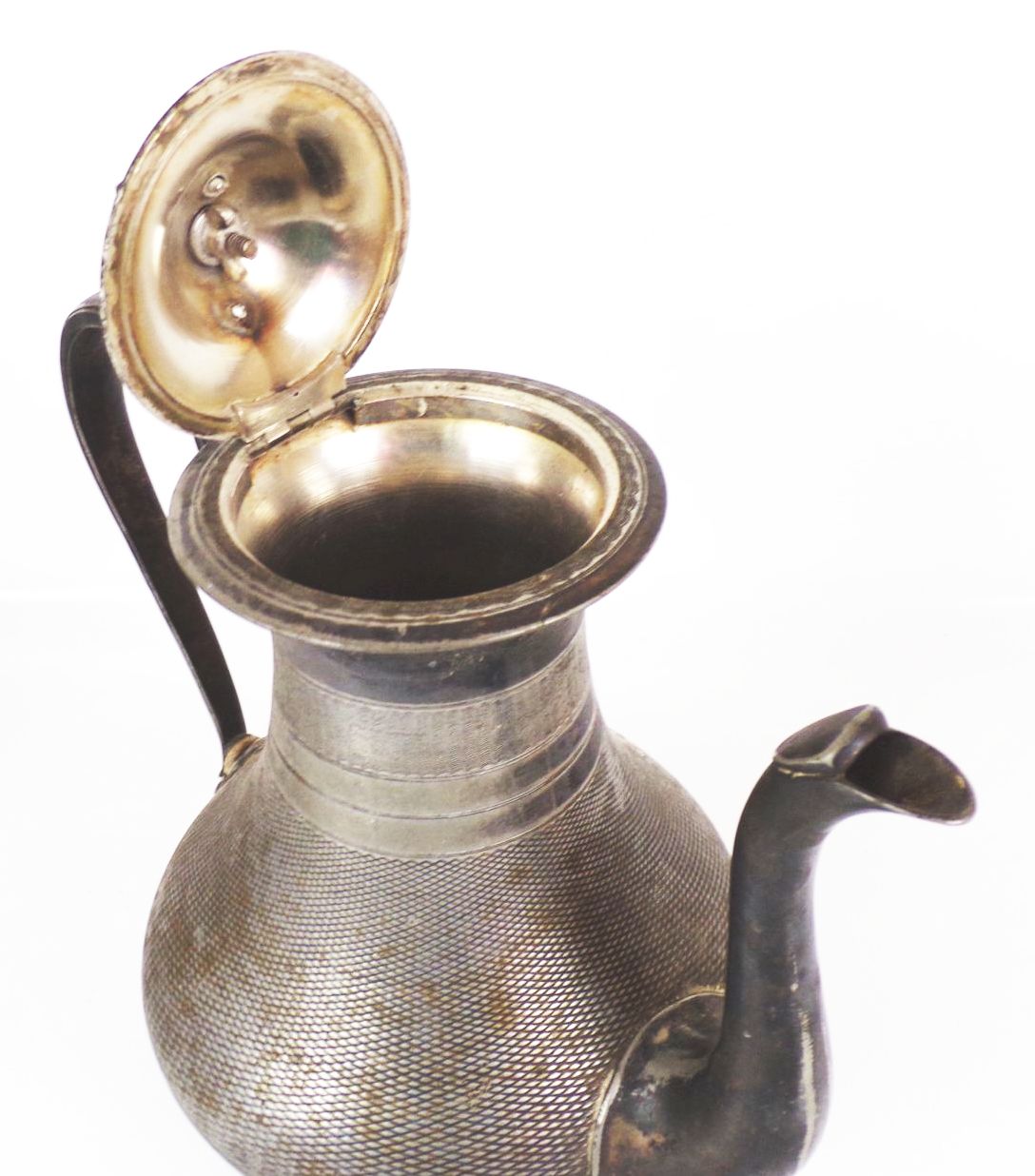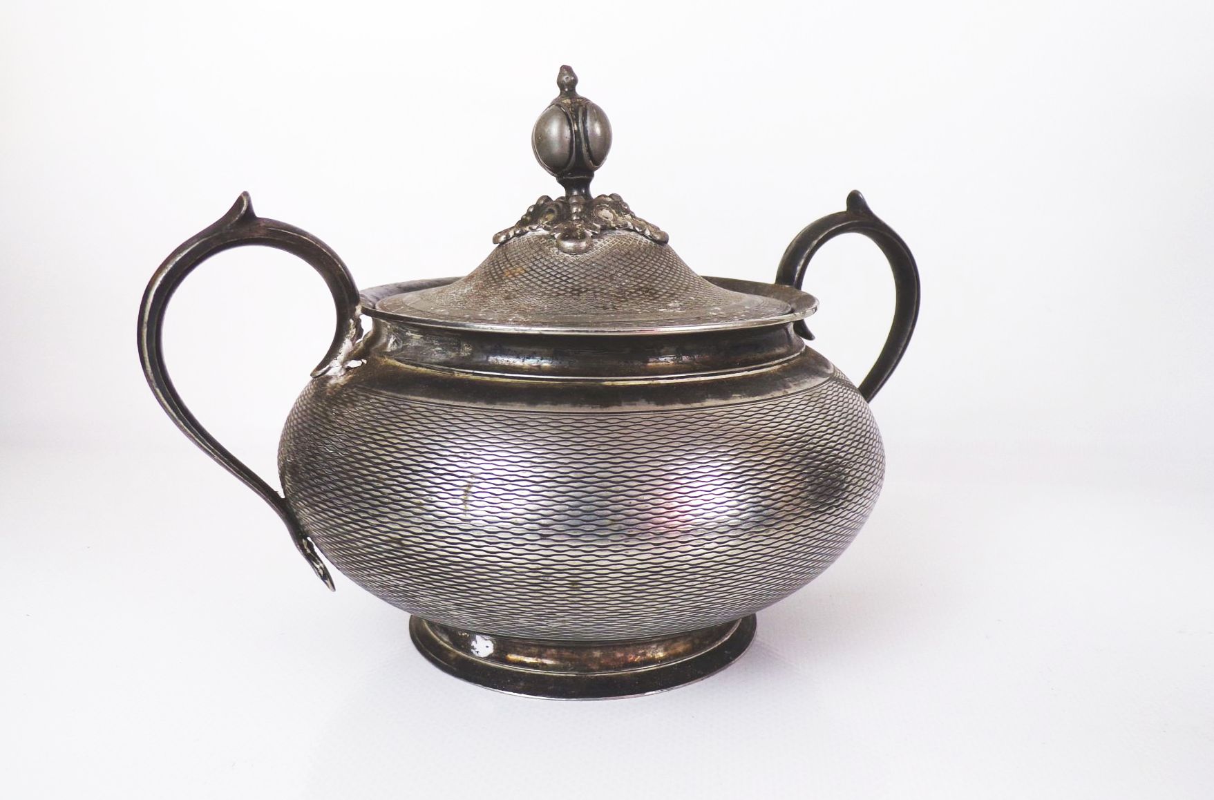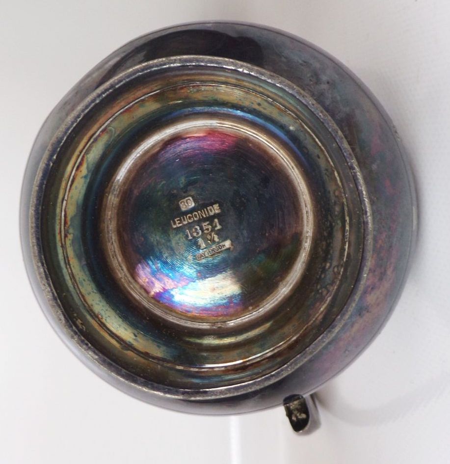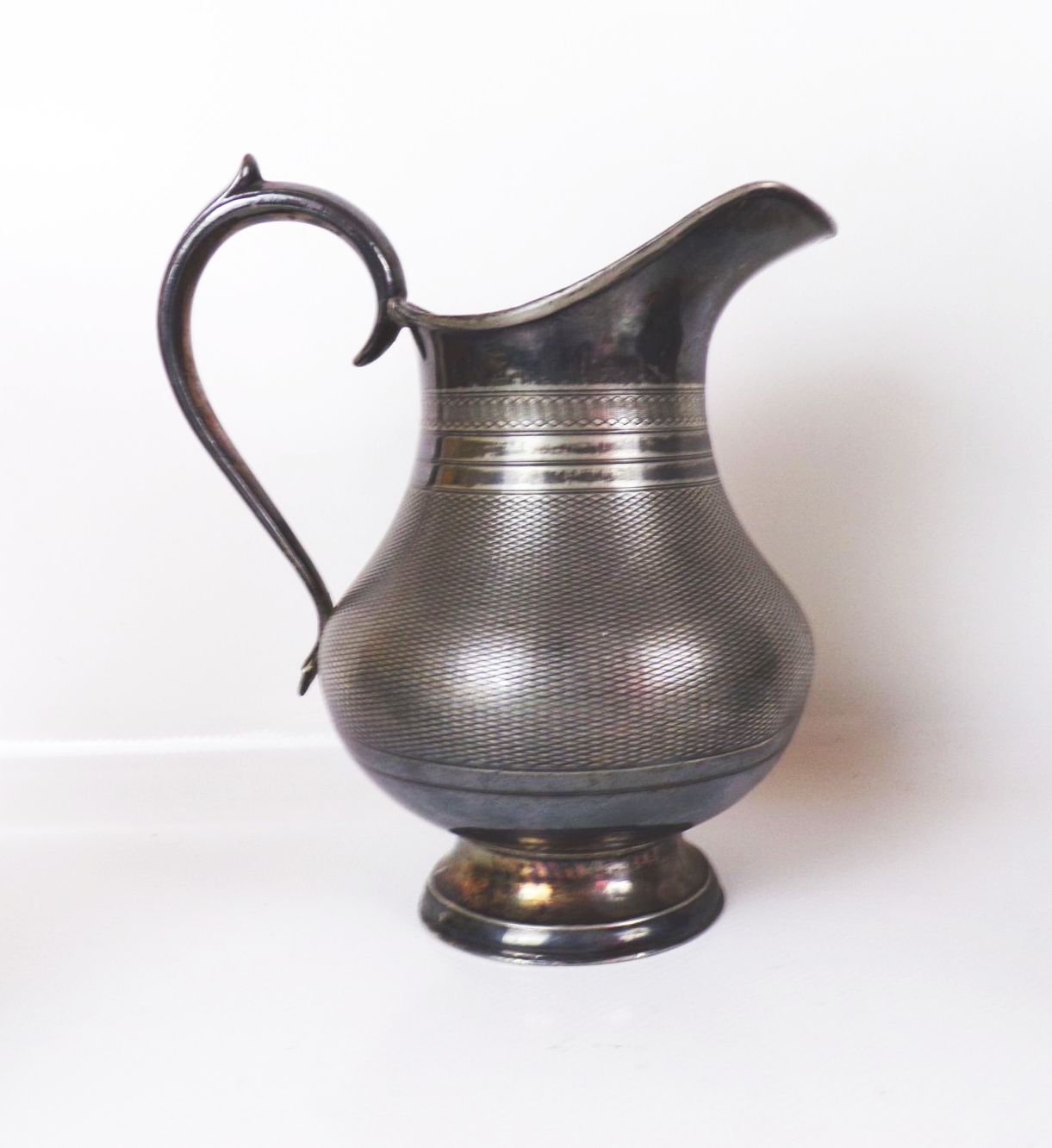 Originales, altes Ensemble, bestehend auf einer Kaffeekanne, einer Zuckerdose und einem Sahnekännchen. Aus versilberten ( 80er Auflage ) Metall. Marke: 80 Leuconide 1351 Kayser & Sohn. Größe Zuckerdose: 13 cm, Größe Sahnekännchen: 13,5 cm und Größe Kaffeekanne: 24,5 cm. Erhaltung: Versilberung altersbedingt angelaufen, Innenrand des Deckels der Zuckerdose leicht eingedellt, Gebrauchsspuren und Patina vorhanden, alles weitere siehe bitte Fotos.