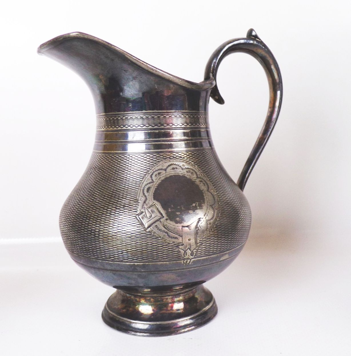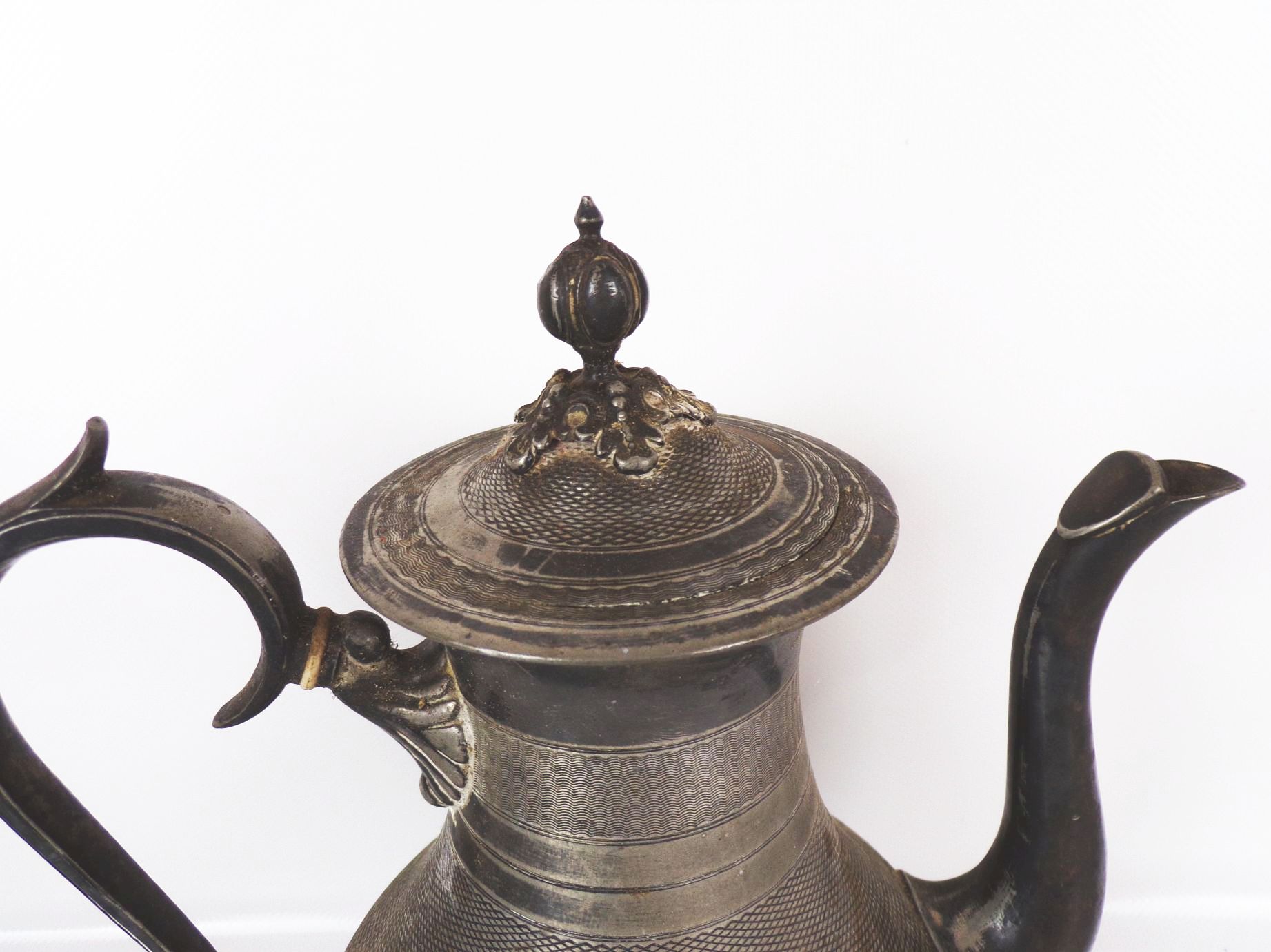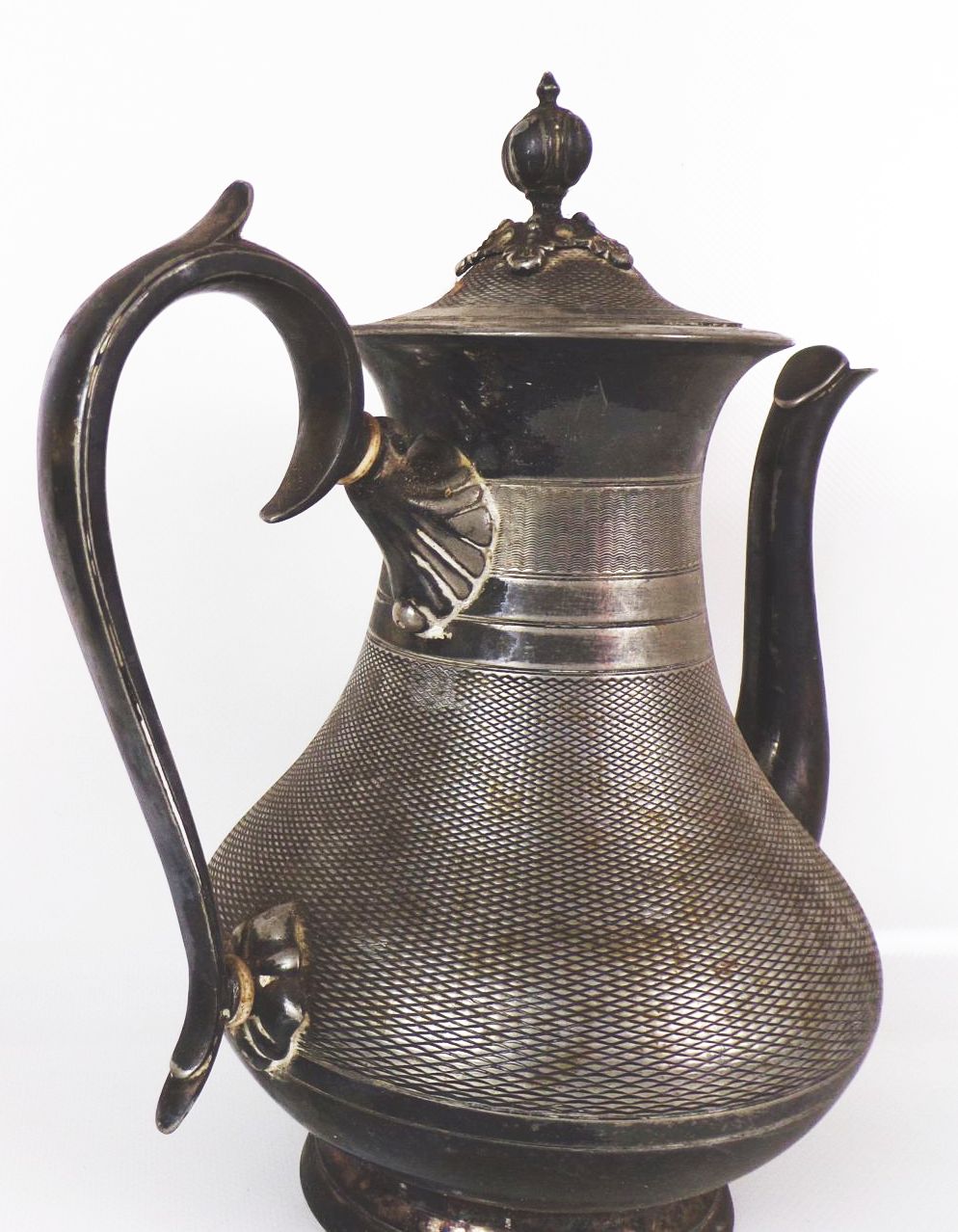 Originales, altes Ensemble, bestehend auf einer Kaffeekanne, einer Zuckerdose und einem Sahnekännchen. Aus versilberten ( 80er Auflage ) Metall. Marke: 80 Leuconide 1351 Kayser & Sohn. Größe Zuckerdose: 13 cm, Größe Sahnekännchen: 13,5 cm und Größe Kaffeekanne: 24,5 cm. Erhaltung: Versilberung altersbedingt angelaufen, Innenrand des Deckels der Zuckerdose leicht eingedellt, Gebrauchsspuren und Patina vorhanden, alles weitere siehe bitte Fotos.