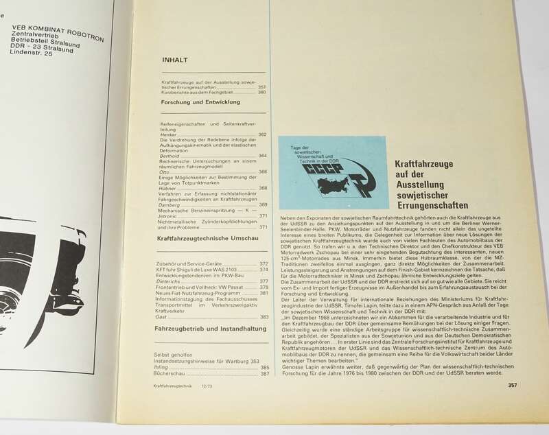 KFT Kraftfahrzeugtechnik Zeitschrift 12 1973 Multicar 22 Shiguli de Luxe