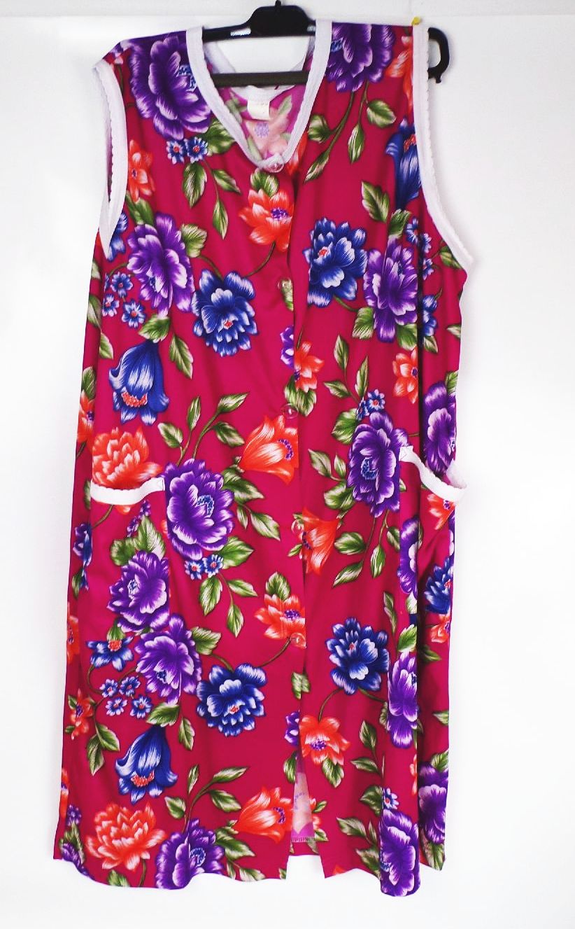 Kittelschürze, nach 1990 produziert. Maße, Länge: 101 cn, Schulterbreite: 45 cm, Bundweite 63 cm. Mit Knopfverschluss, und zwei Seitentaschen. Ungewaschener Fundzustand Erhaltung: gebrauchter, guter Zustand, alles weitere siehe bitte Fotos. Es wird keine Mehrwertsteuer ausgewiesen, da wir der Differenzbesteuerung nach § 25a UStG unterliegen.