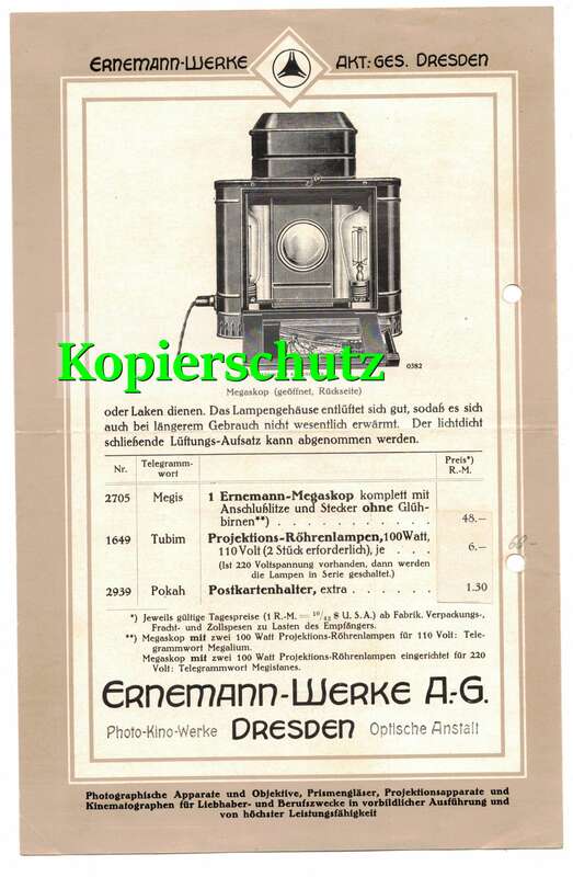 6 originale Prospekte, aus den 1920iger Jahren, Ernemann - Werke, Dresden, Filmapparate.
