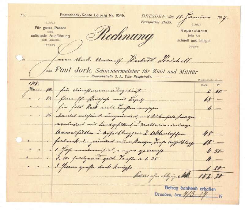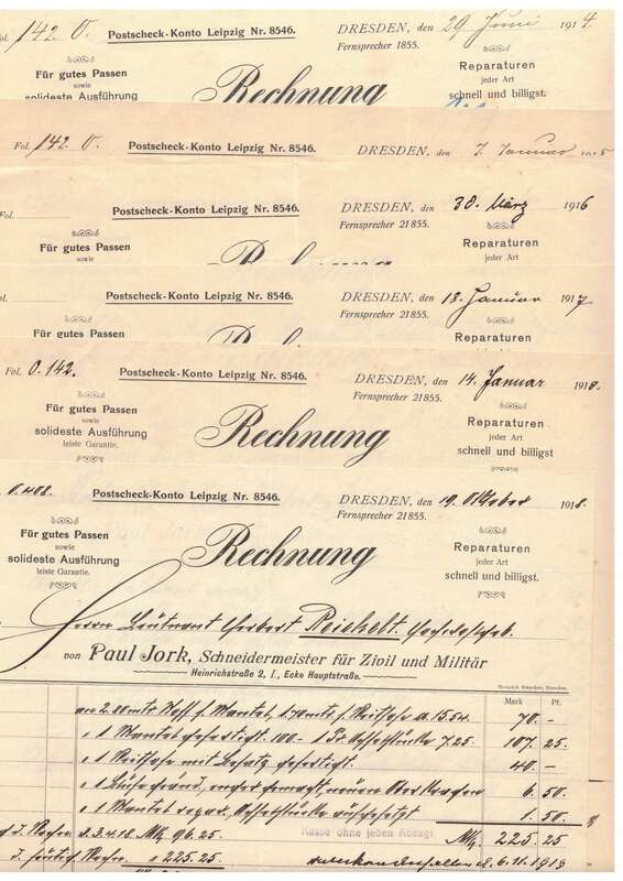 Konvolut Rechnungen Paul Jork Schneider Zivil Militär Dresden 1917 Uniformen