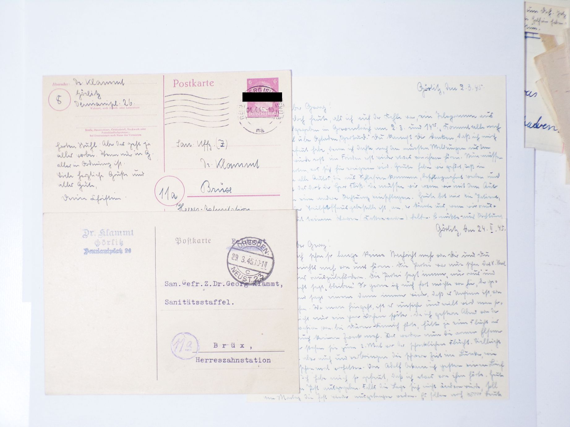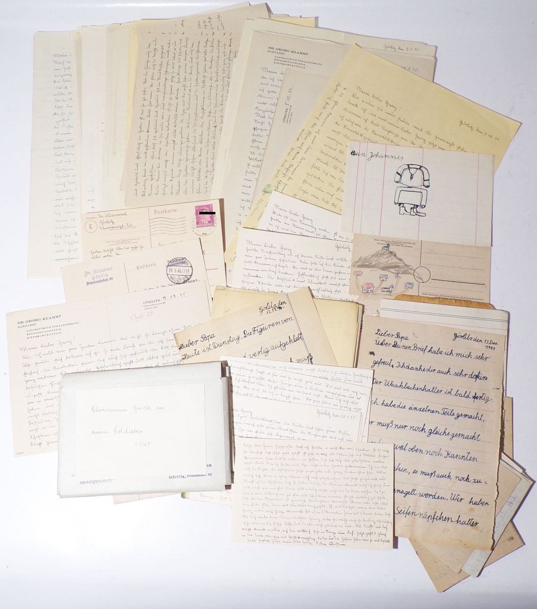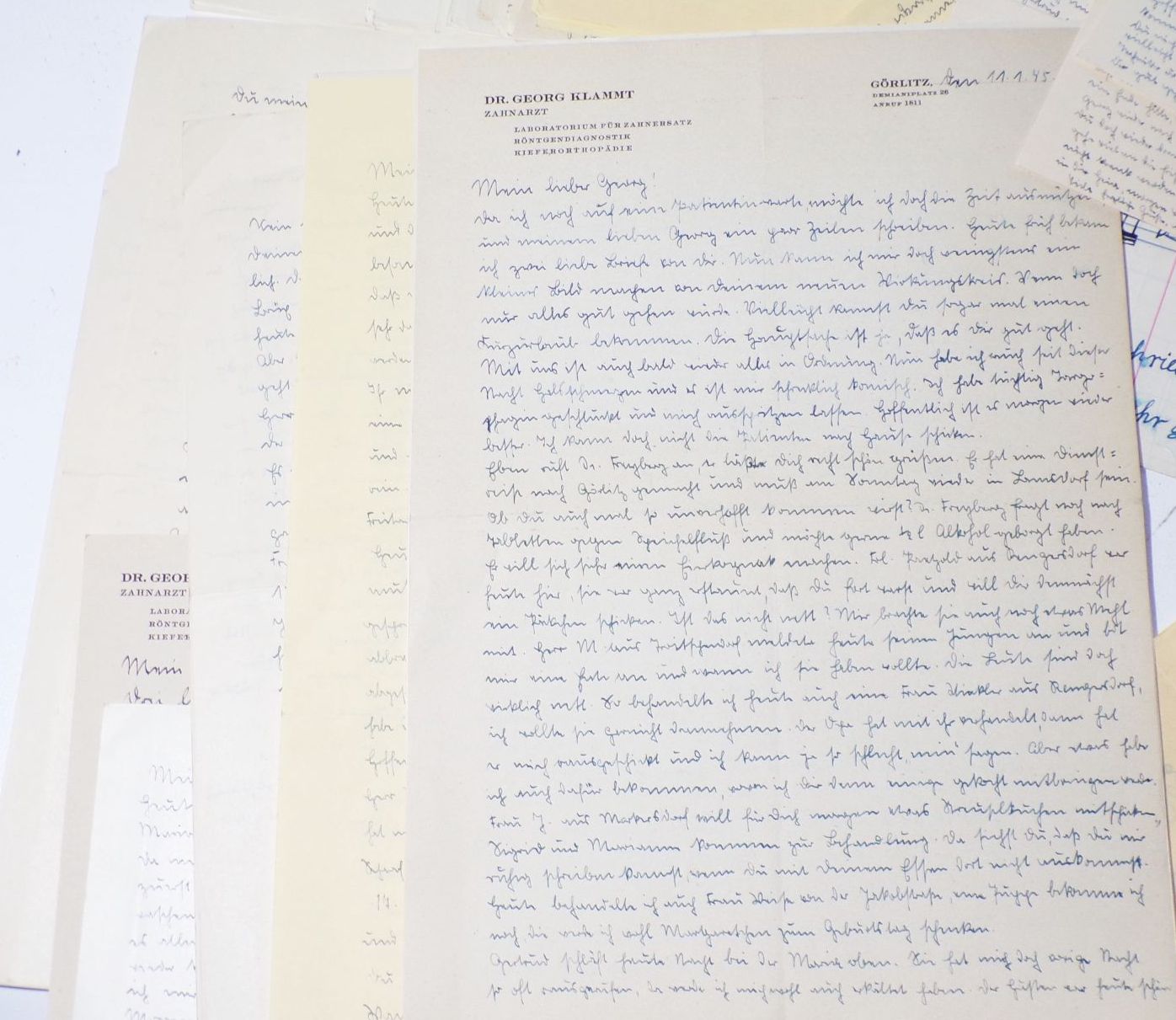 Zirca 100 handgeschriebene Briefe und Karten, meist aus den Jahren 1944 - Ende 1945. Stammt alles aus einen Nachlass, eines Zahnarztes. Die Kuverts sind nicht mehr vorhanden.