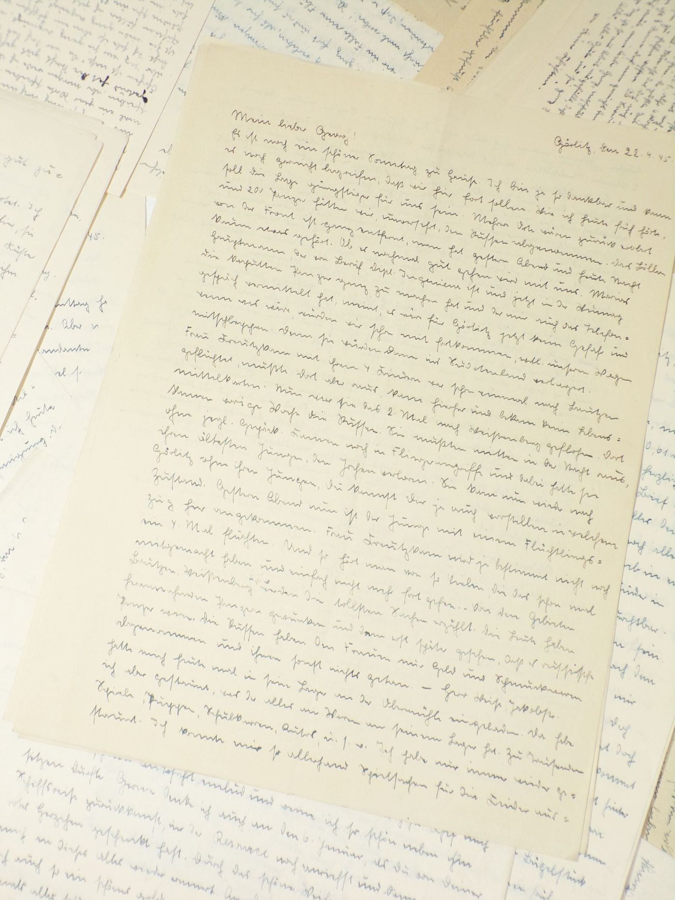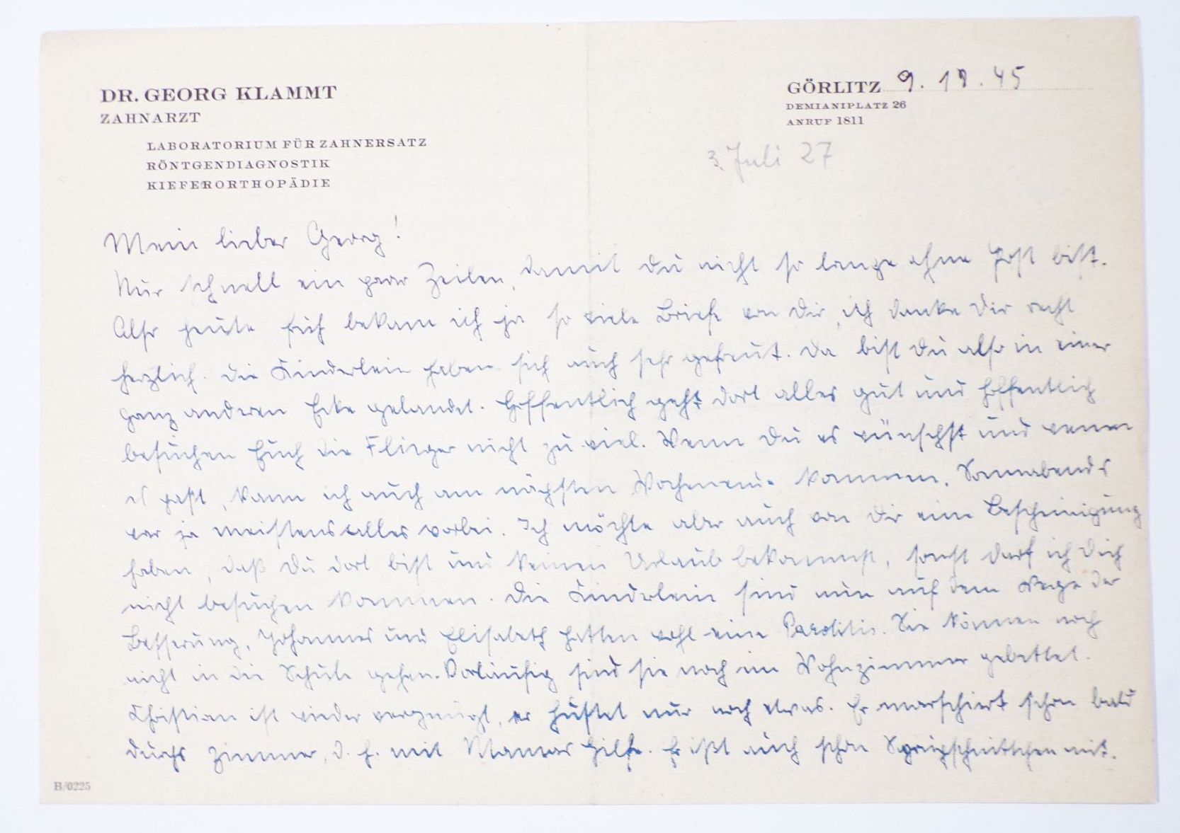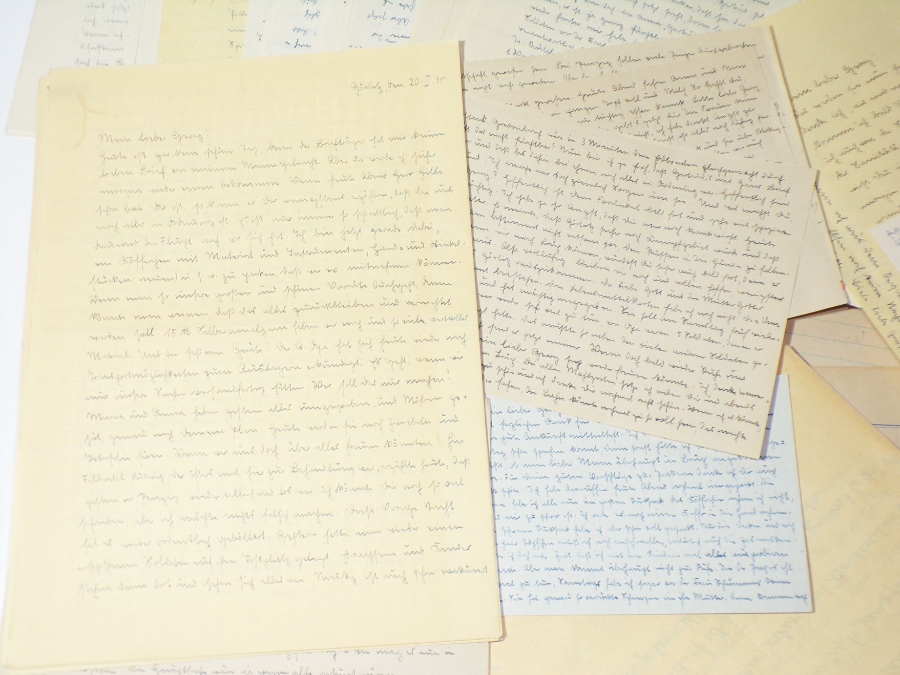 Zirca 100 handgeschriebene Briefe und Karten, meist aus den Jahren 1944 - Ende 1945. Stammt alles aus einen Nachlass, eines Zahnarztes. Die Kuverts sind nicht mehr vorhanden.