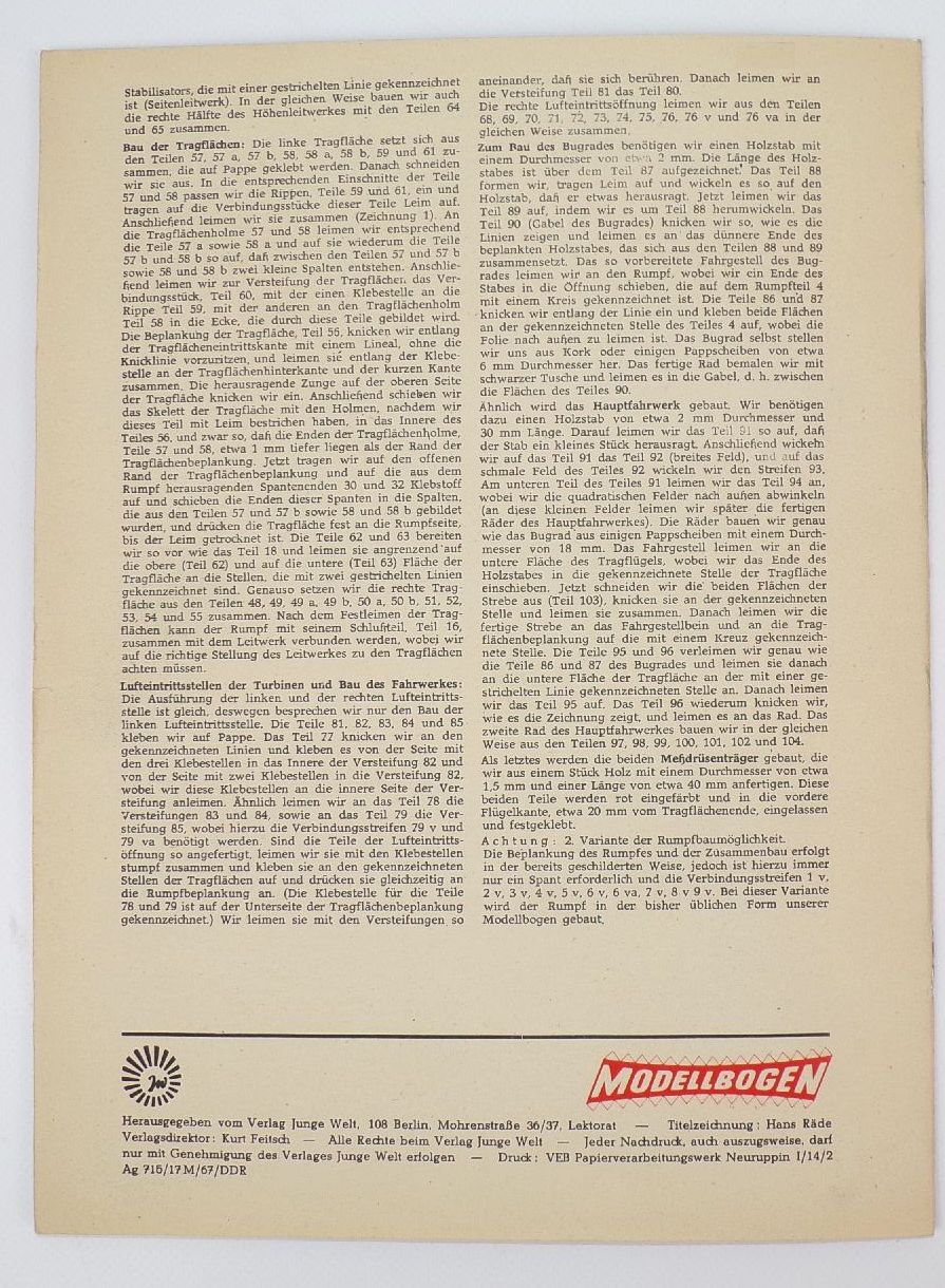 Kranich Modellbogen Polnischer Strahltrainer Iskra 1967 Ausschneidebogen