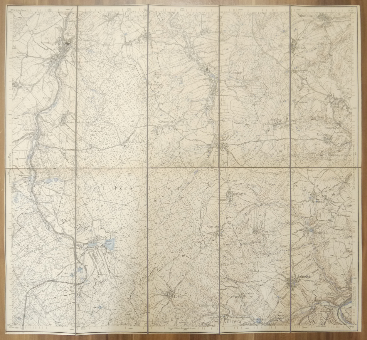 Landkarte Leinen Elsterberg (Sächs.) Triebes (Preuß.) Leinenlandkarte um 1890