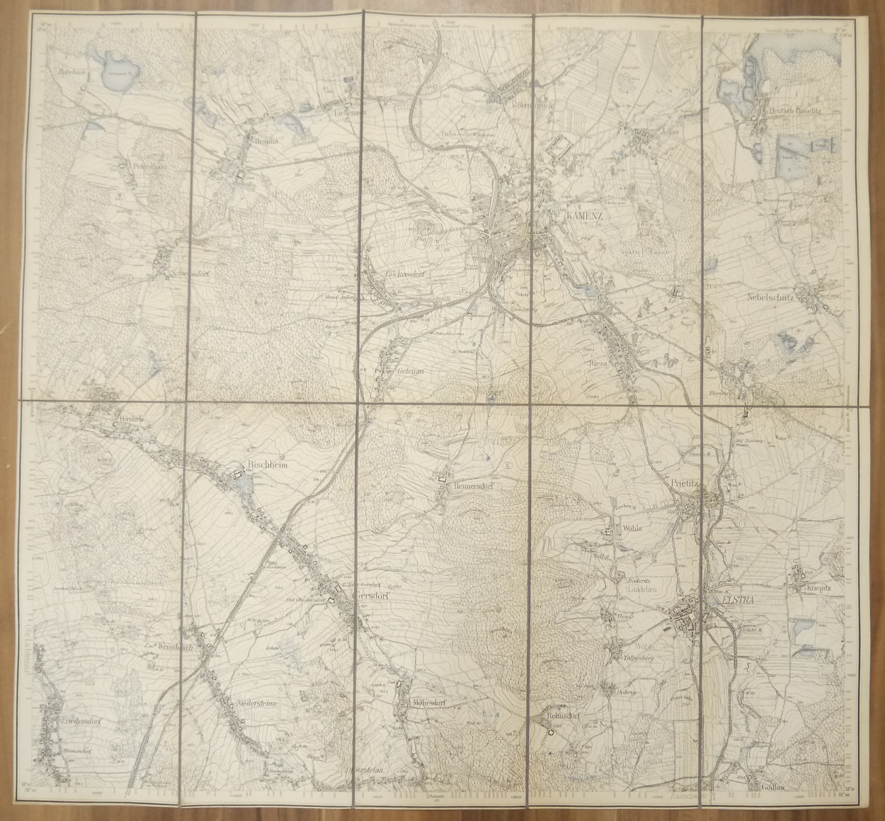 Landkarte Leinen Kamenz Sachsen 1:25000 Leinenlandkarte um 1890