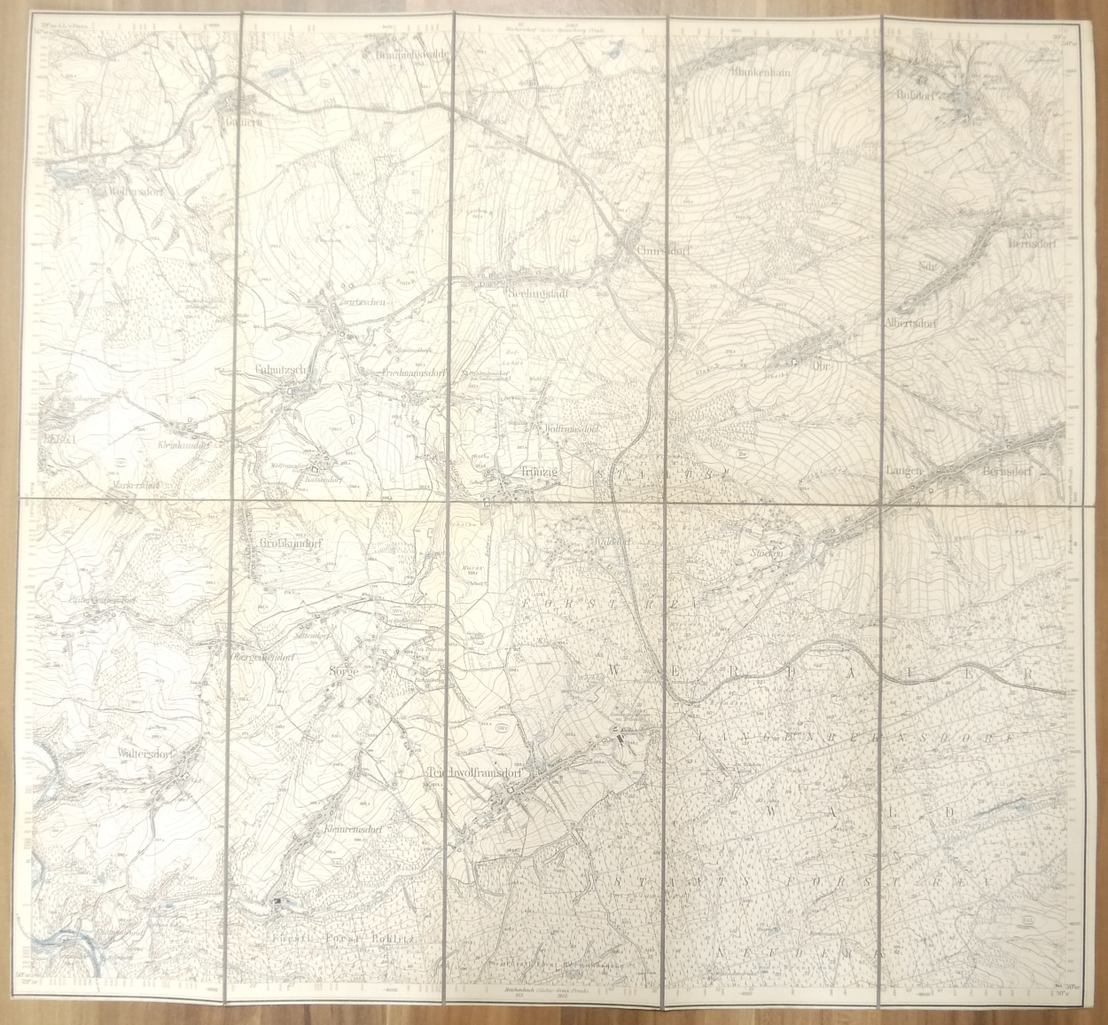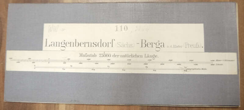 Landkarte Leinen Langenbernsdorf (Sächs.) Berga a. d. Elster (Preuß.) Leinenlandkarte um 1890