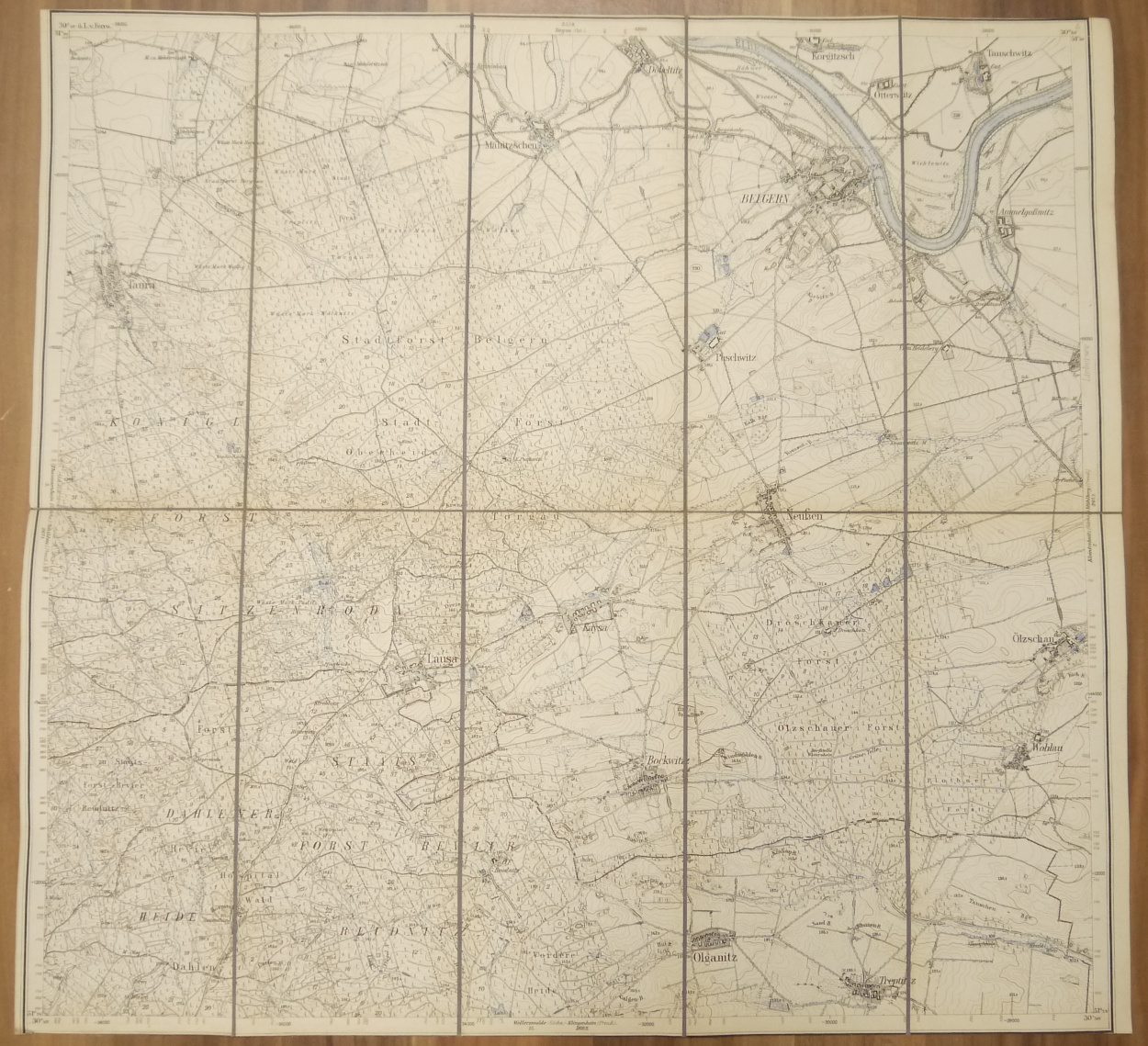 Landkarte Leinen Olganitz (Sächs.) Belgern (Preuß.) 1:25000 Leinenlandkarte um 1890