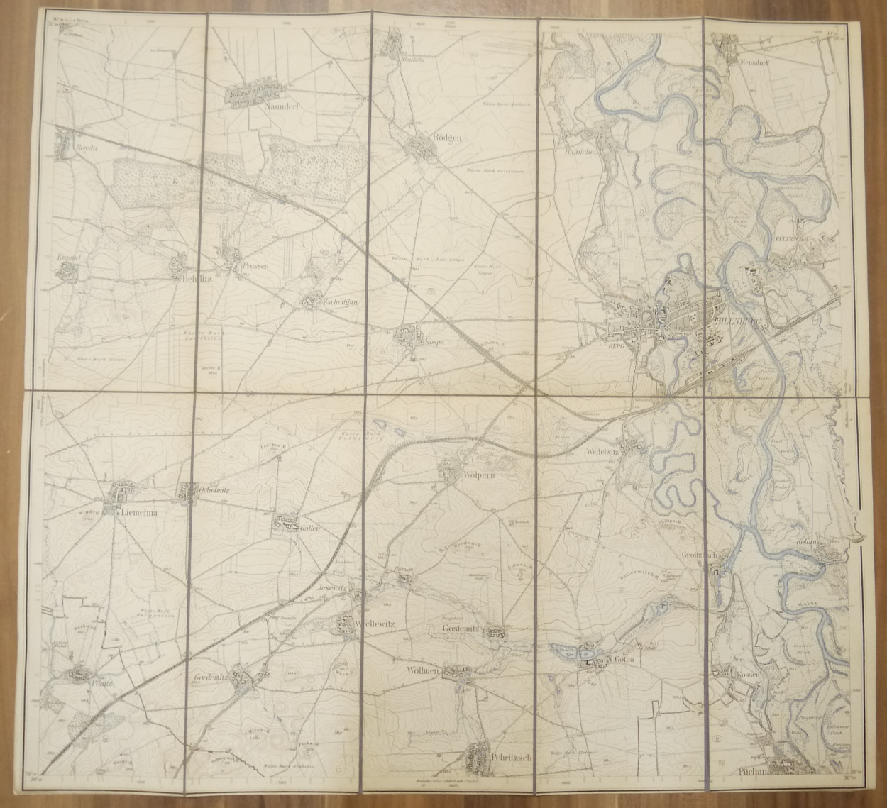 Landkarte Leinen Pönitz (Sächs.) Eilenburg (Preuß.) um 1890 Leinenlandkarte