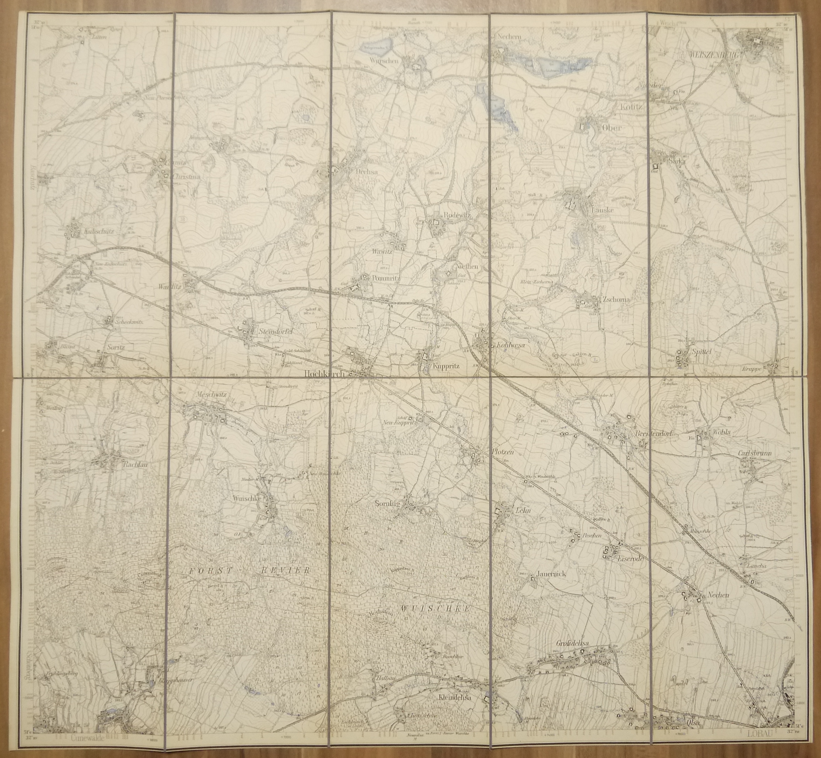 Leienlandkarte Hochkirch Sachsen Landkarte Leinen um 1890