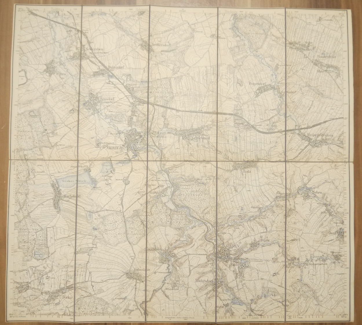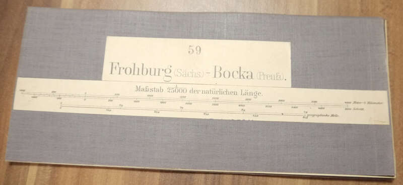 Leinen Landkarte Frohburg (Sächs.) Bocka (Preuß.) 1:25000 um 1890 Leinenlandkarte