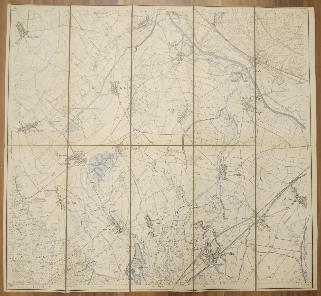 Leinen Landkarte Gröditz (Sächs.) Kröbeln (Preuß.) 1:25000 um 1890 Leinenlandkarte