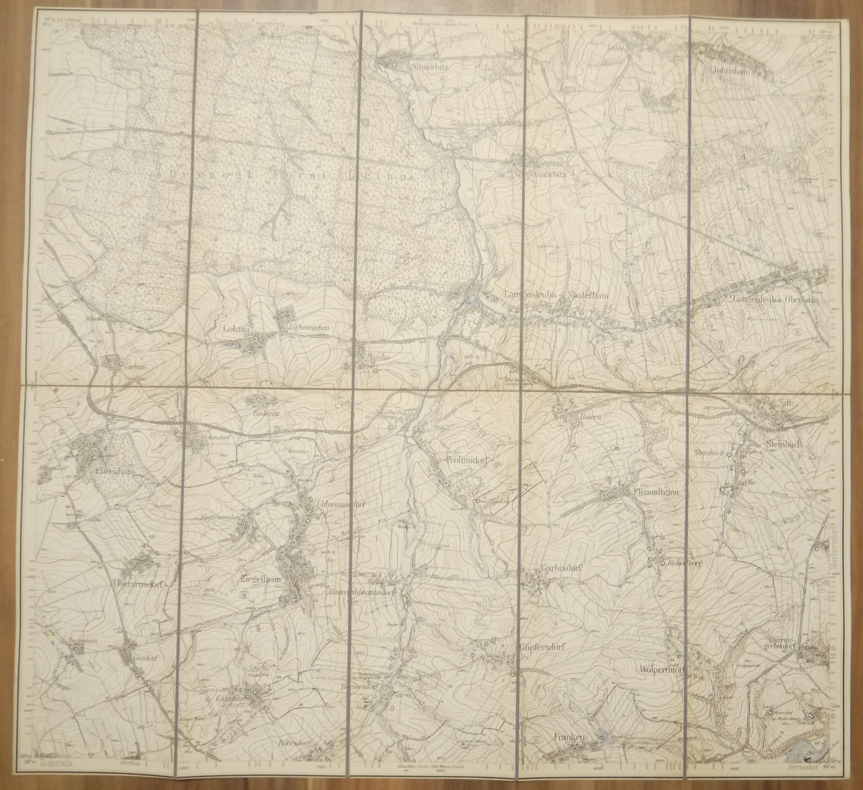 Leinen Landkarte Langenleuba Oberhain (Sächs) um 1890 Niederhain (Preuß.)
