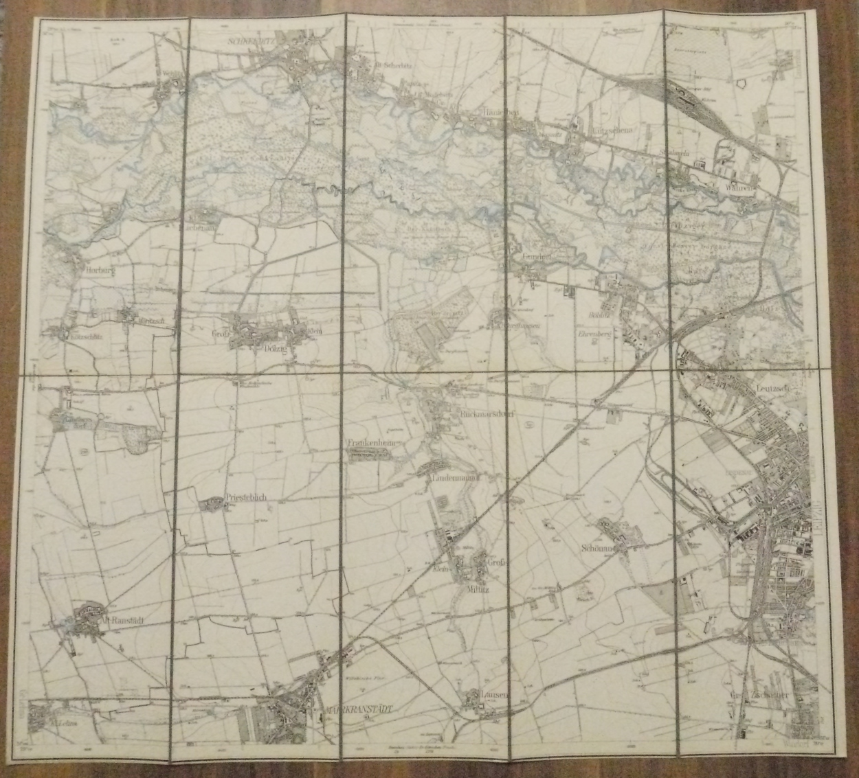 Leinen Landkarte Markranstädt (Sächs) Schkeuditz (Preuß.) Leinenlandkarte um 1890