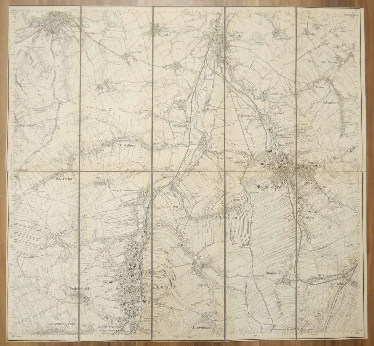 Leinen Landkarte Meerane (Sächs.) Gößnitz (Preuß.) Leinenlandkarte um 1890