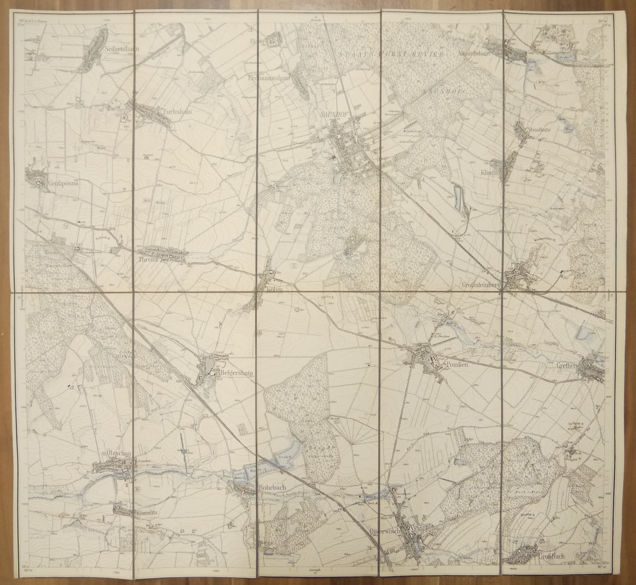 Leinen Landkarte Naunhof Sachsen 1:25000 Leinenlandkarte um 1890