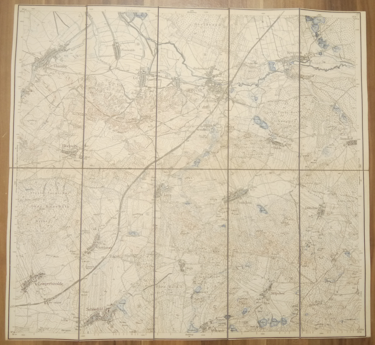 Leinen Landkarte Ponickau (Sächs.) Ortrand (Preuß.) 1:25000 Leinenlandkarte um 1890