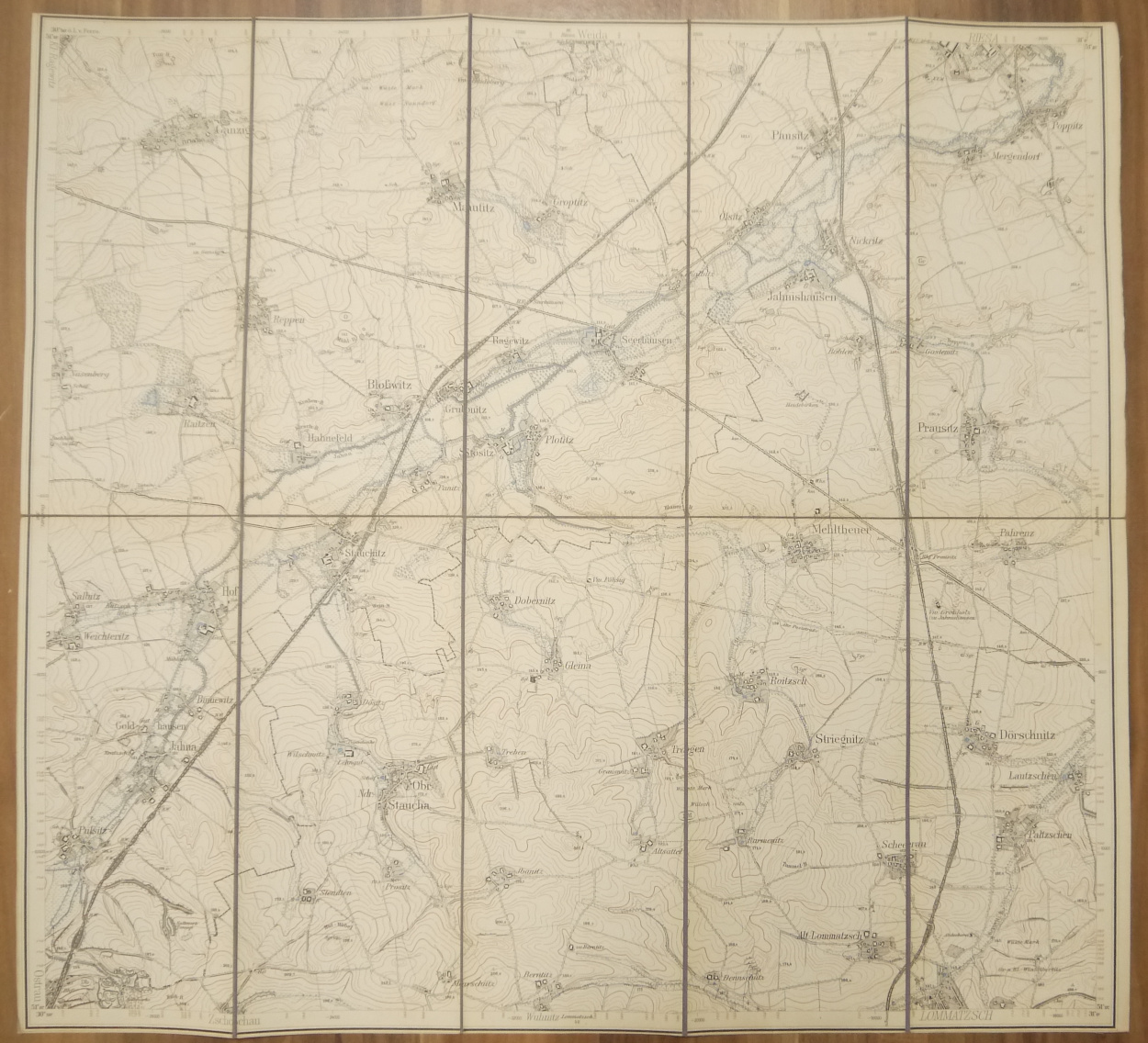 Leinen Landkarte Stauchitz Maßstab 1:25000 um 1890 Leinenlandkarte