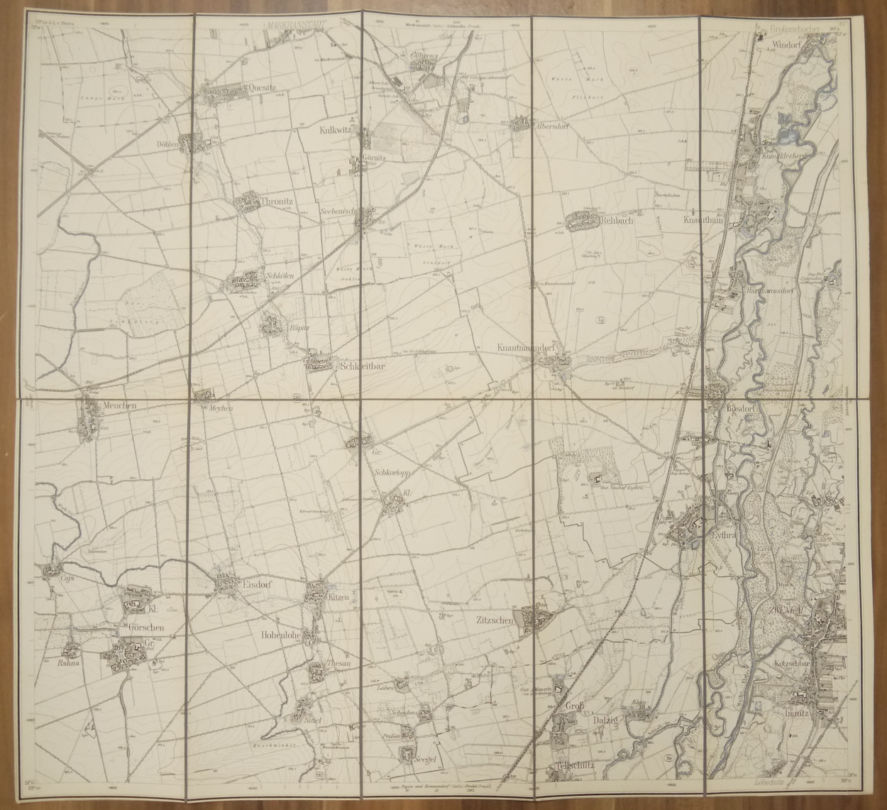 Leinen Landkarte Zwenkau (Sächs.) Großgörschen (Preuß.) 1:25000 Leinenlandkarte um 1890