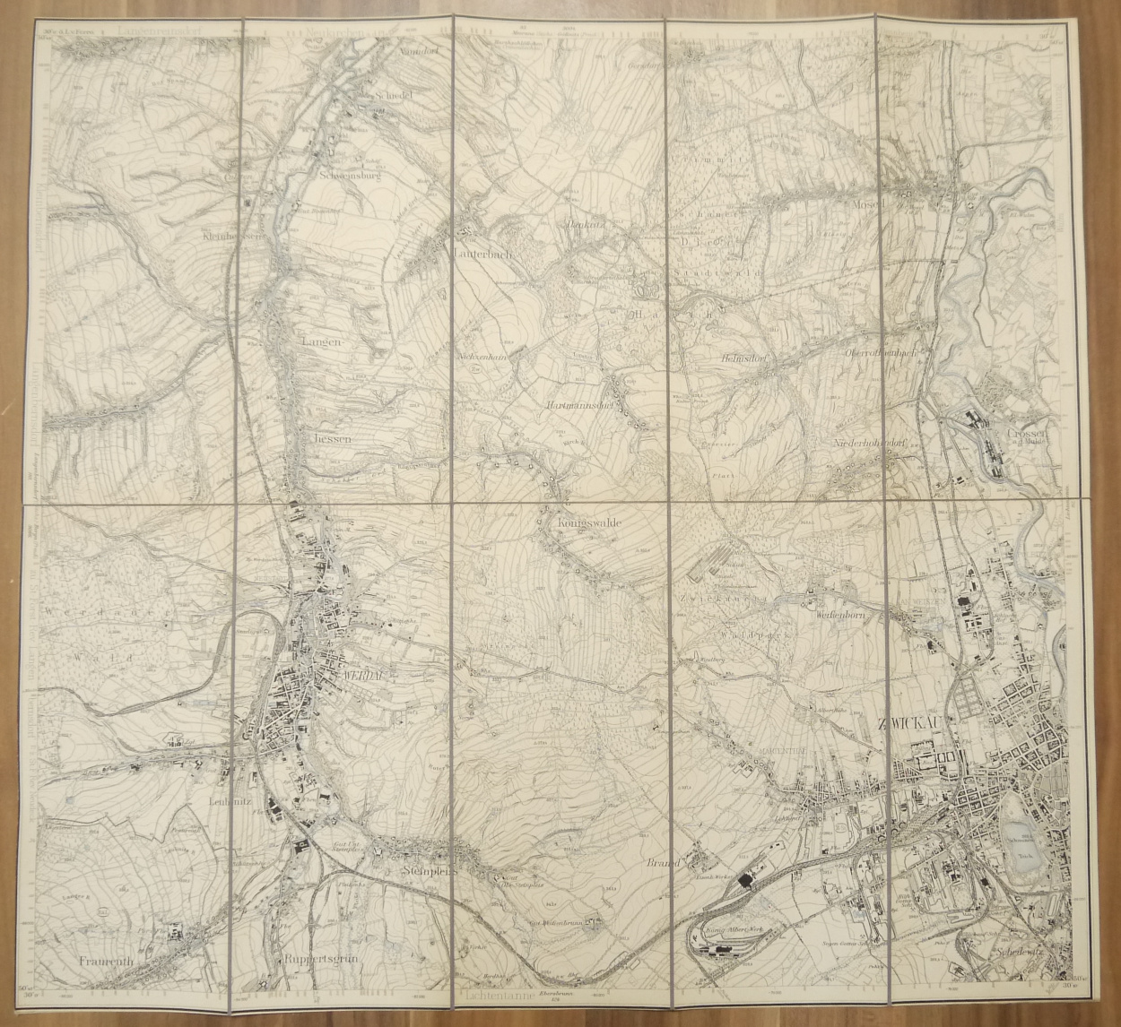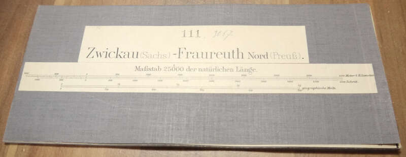 Leinen Landkarte Zwickau (Sächs.) Fraureuth Nord (Preuß.) Leinenlandkarte um 1890