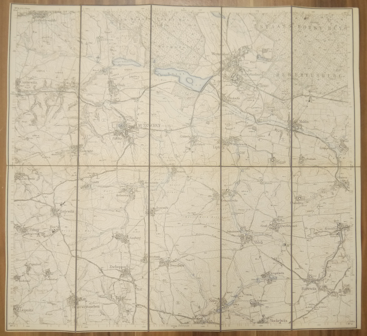 Leinenlandkarte Mutzschen 1:25000 um 1890 Leinen Landkarte