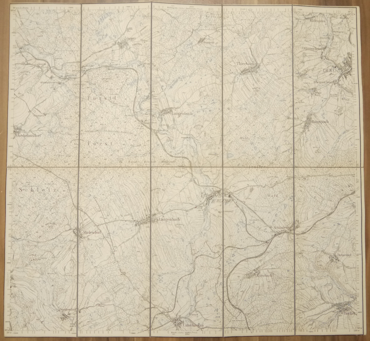Leinenlandkarte Pausa (Sächs.) Lössau (Preuß.) 1:25000 um 1890 Landkarte Leinen