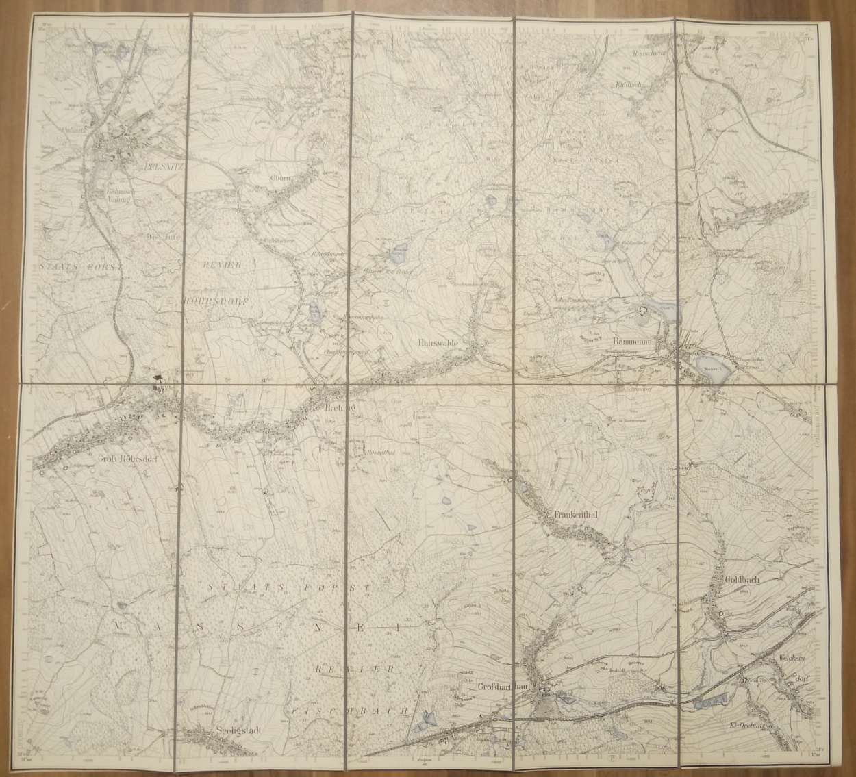 Leinenlandkarte Pulsnitz Sachsen 1:25000 Landkarte Leinen um 1890