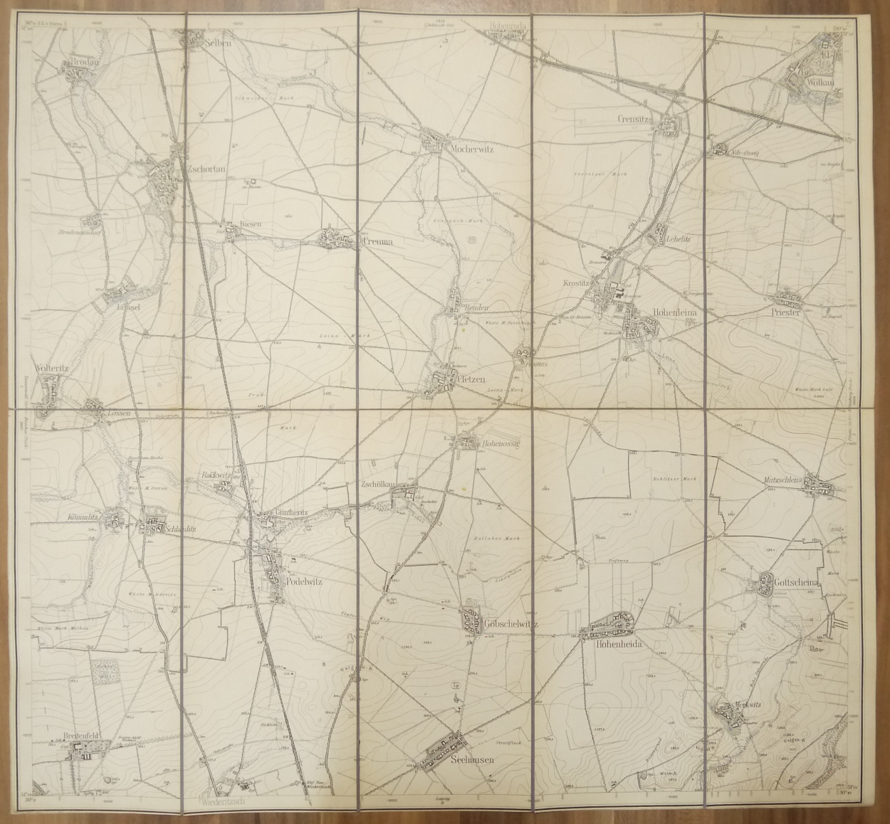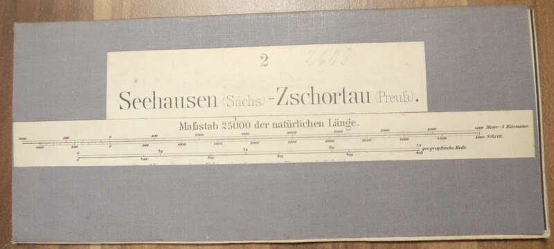 Leinenlandkarte Seehausen (Sächs.) Zschortau (Preuß.) Leinen Landkarte um 1890